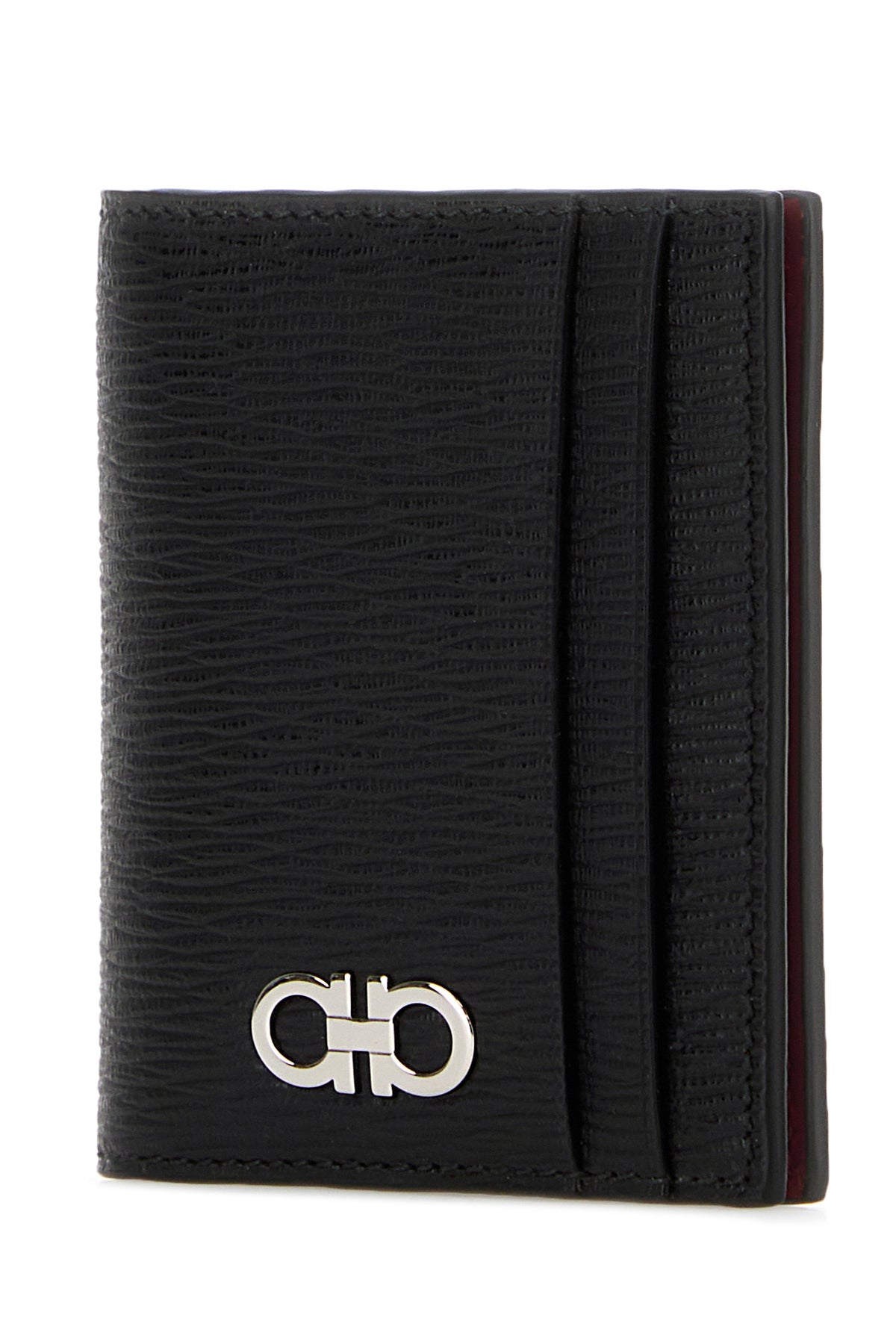 Card holder realized in pebble leather enriched by metal Gancini detail at the front.