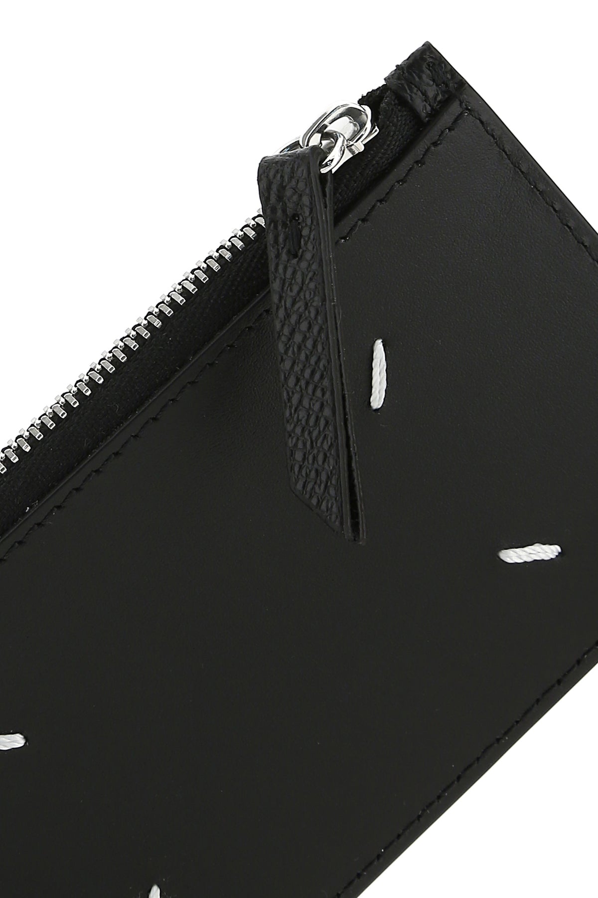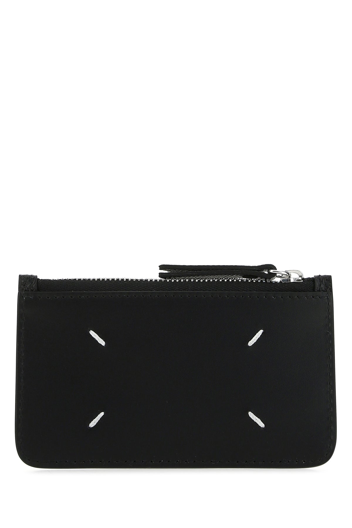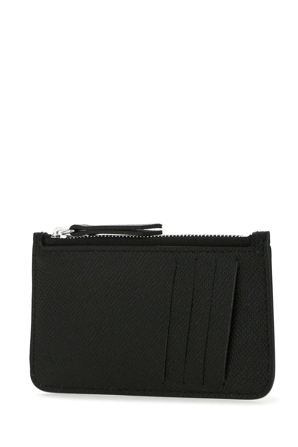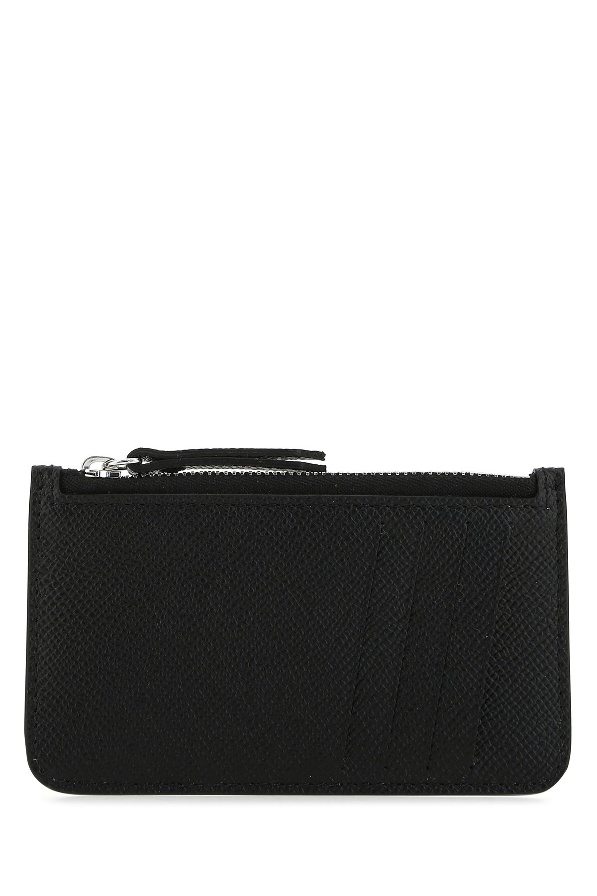 Card holder realized in pebble and smooth bovine leather characterized by contrasting stitchings at the front.