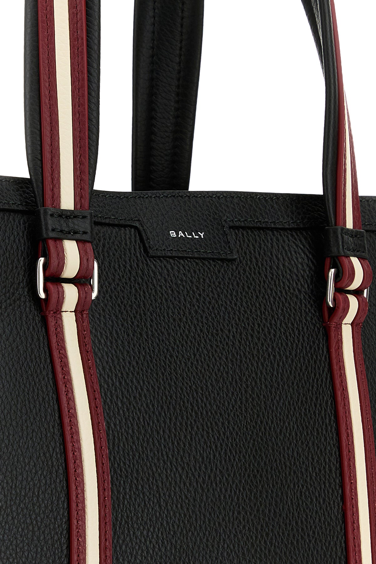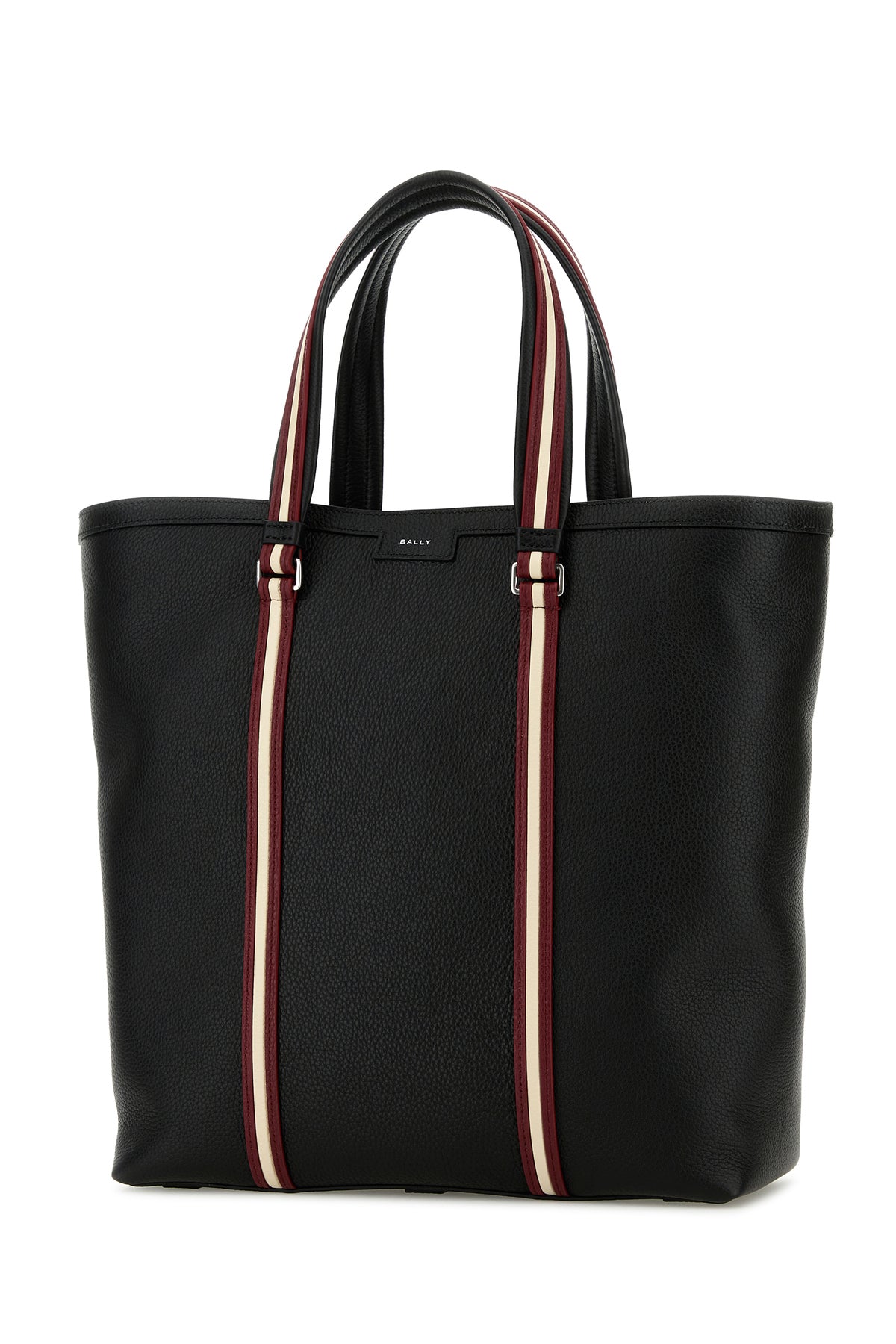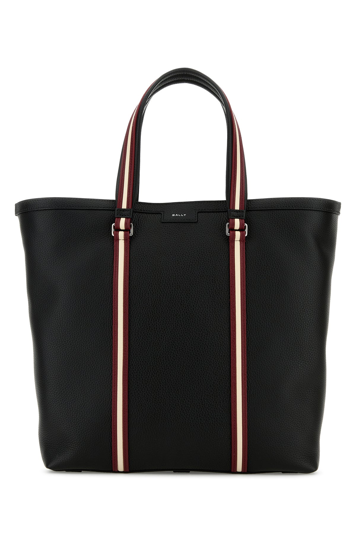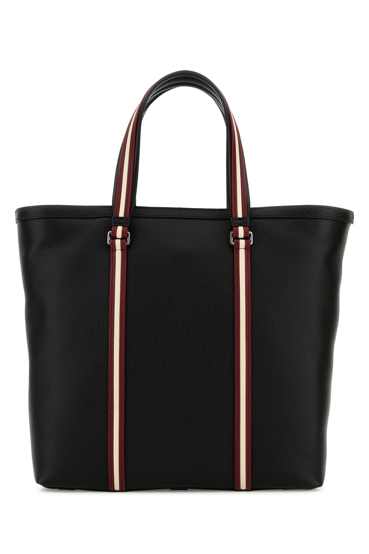 Shopping bag realized in pebble leather characterized by laminated printed logo at the front.