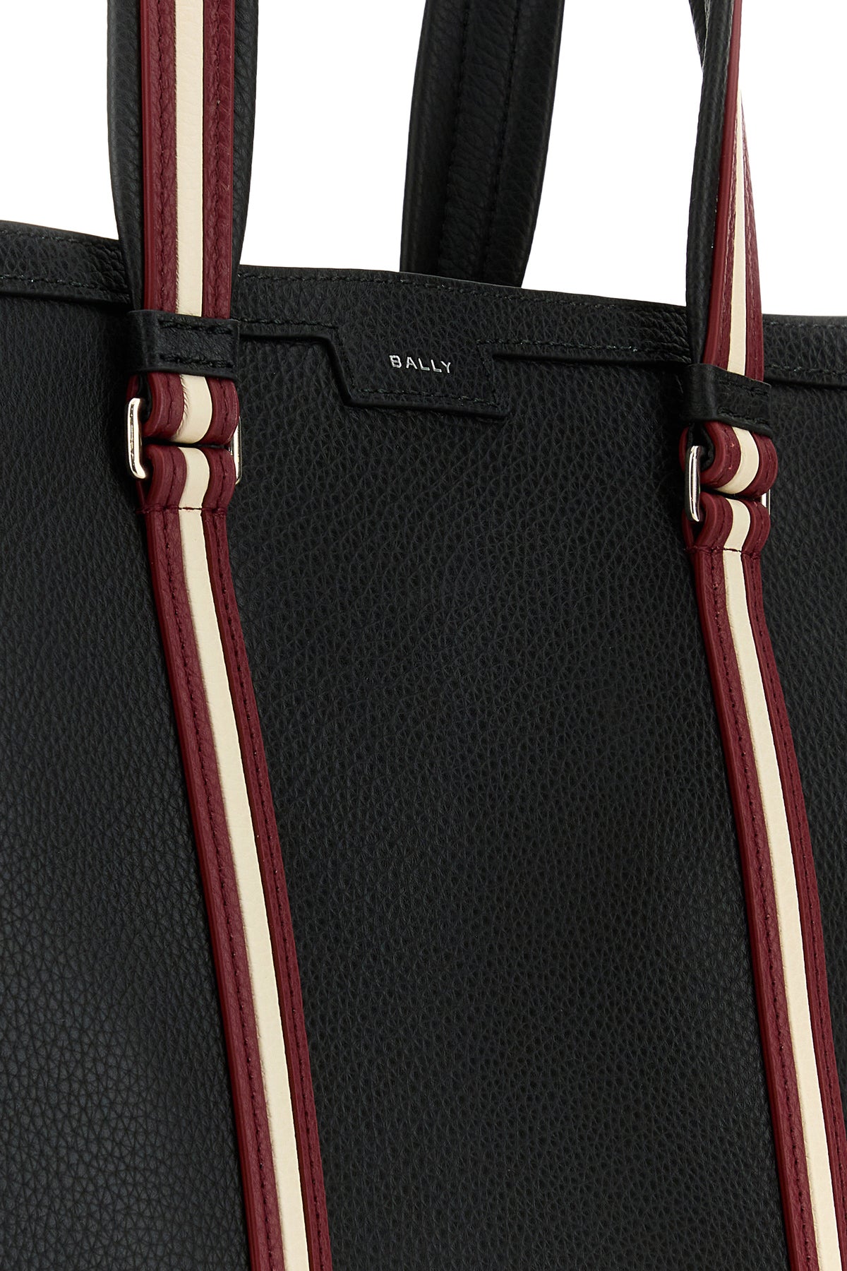 Shopping bag realized in leather characterized by laminated printed logo at the front.