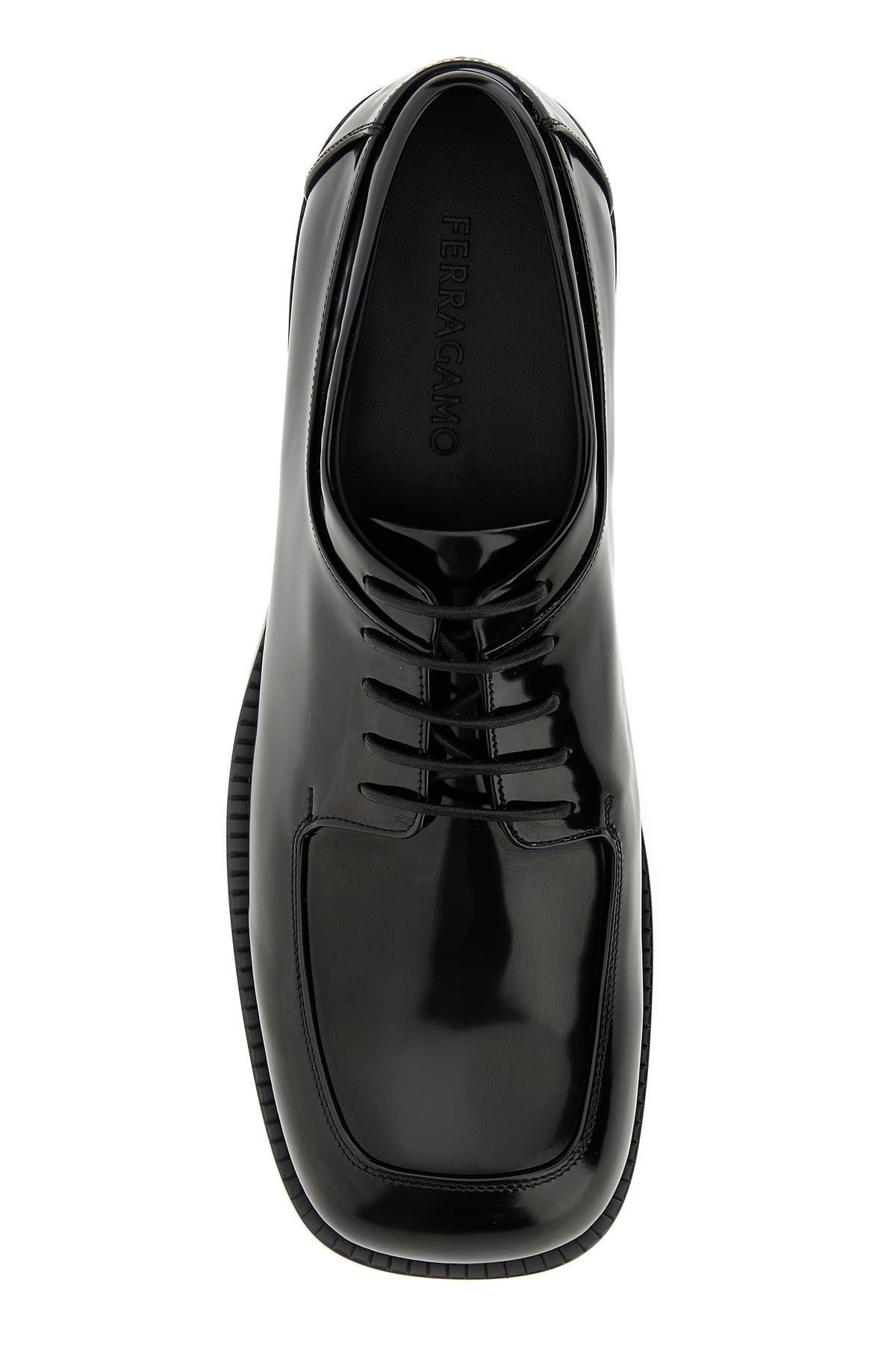 Lace-up shoes realized in polished-finish smooth calf leather.