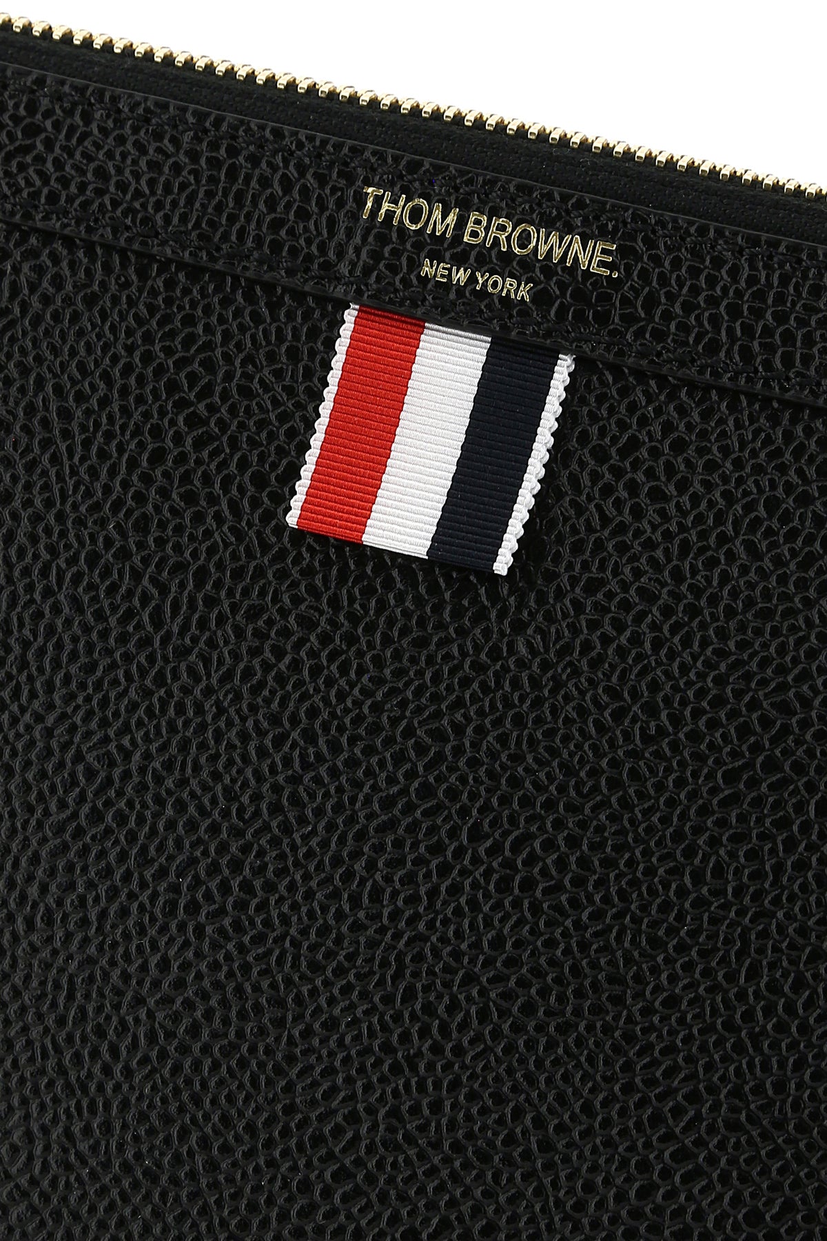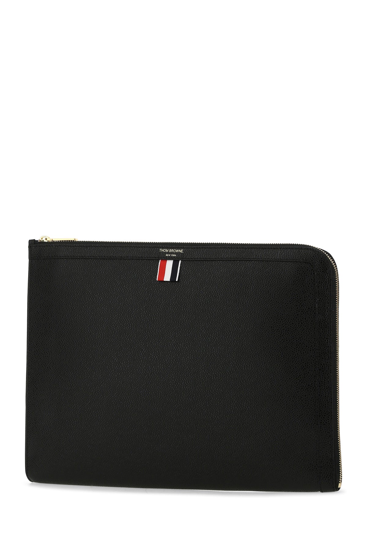 Document case realized in pebble leather characterized by contrasting printed logo at the front enriched by iconic tricolor label at the front.