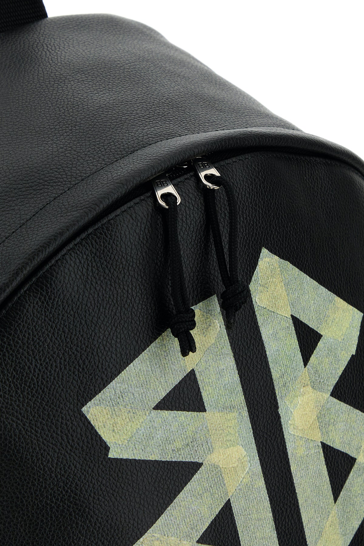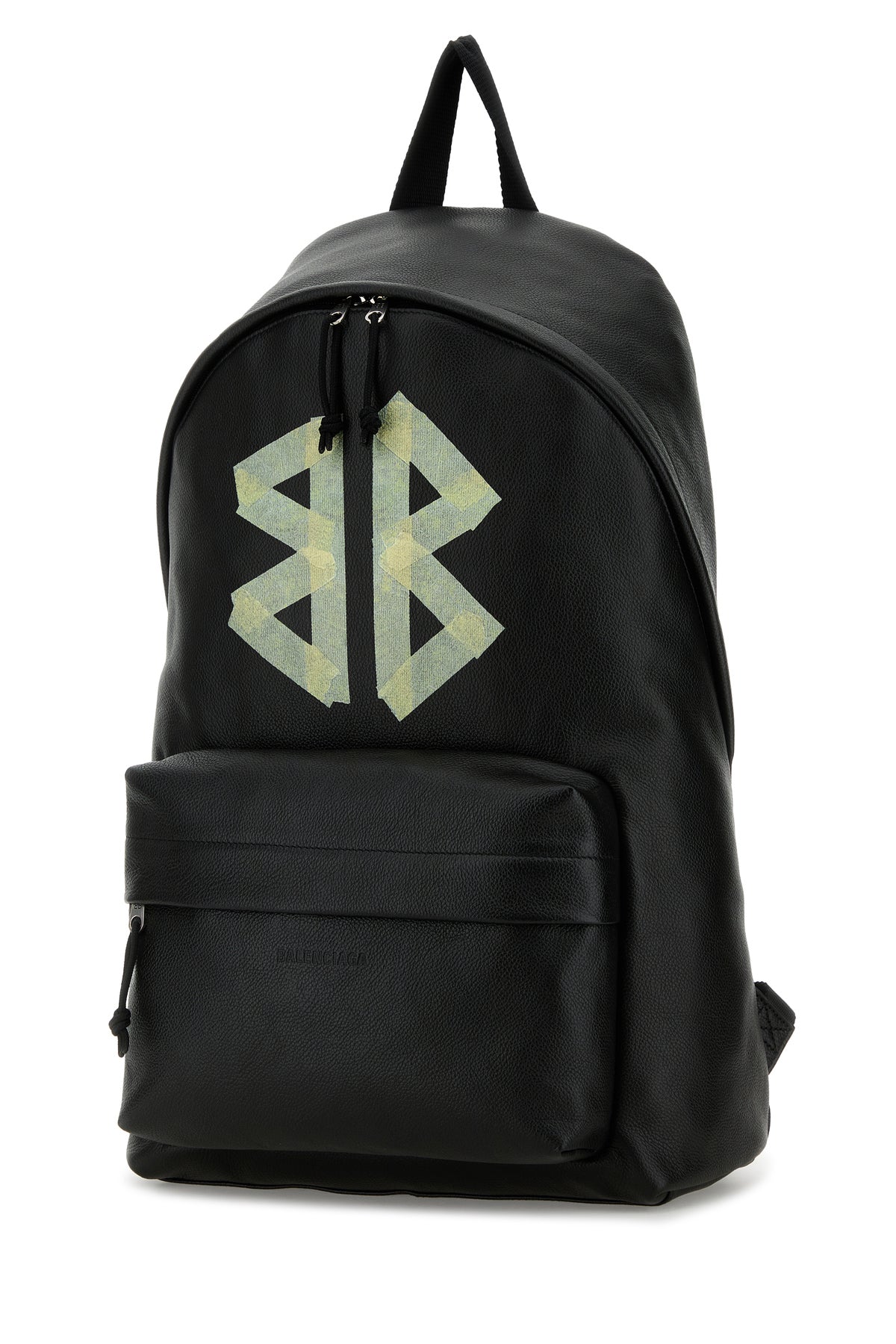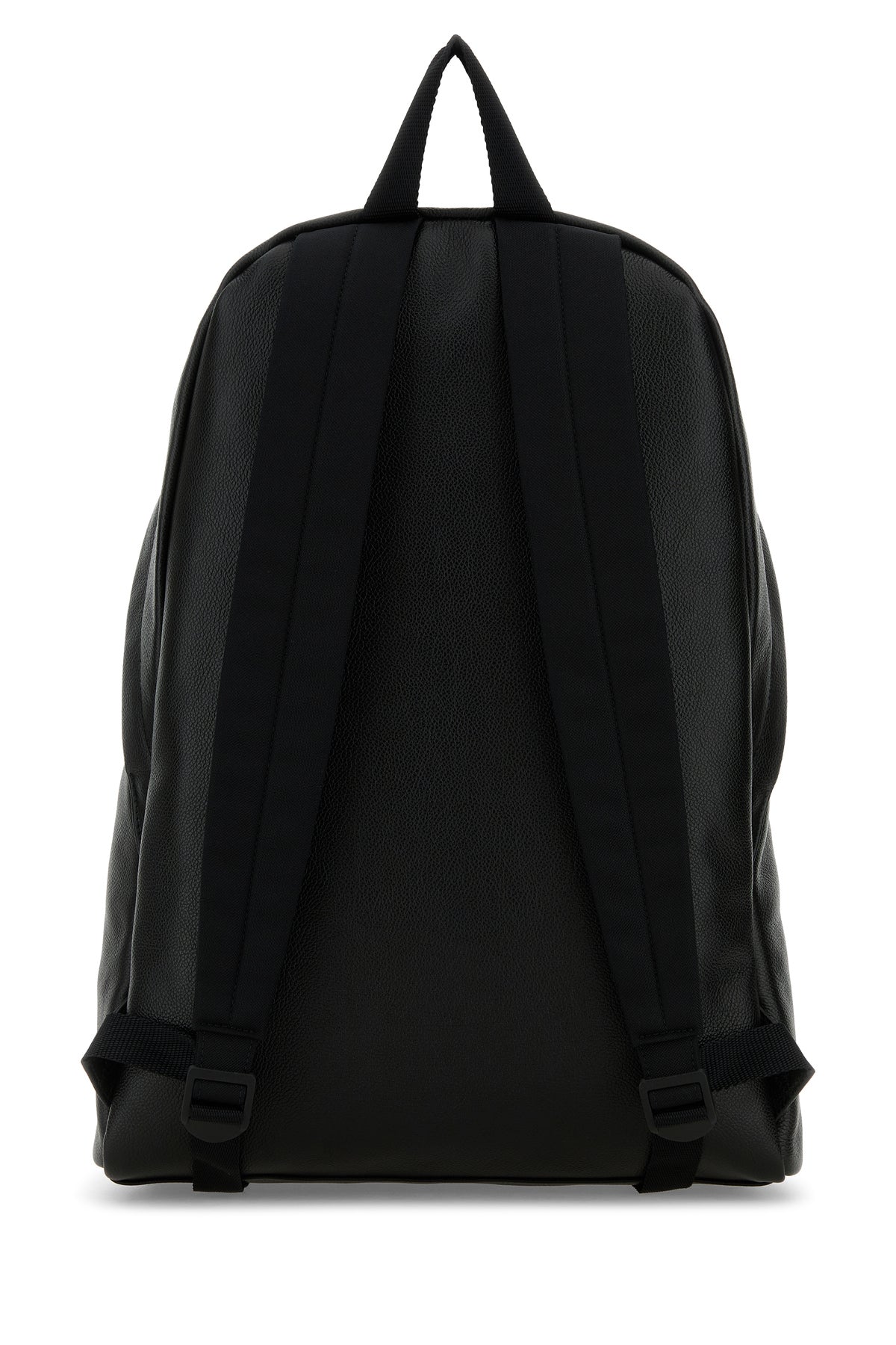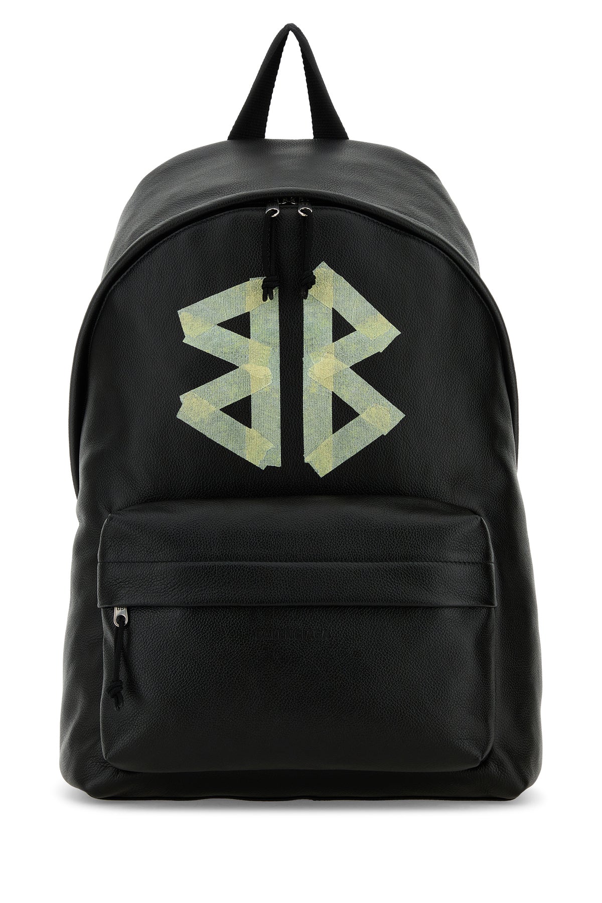 Backpack realized in pebble leather characterized by embossed logo and contrasting printed logo at the front.