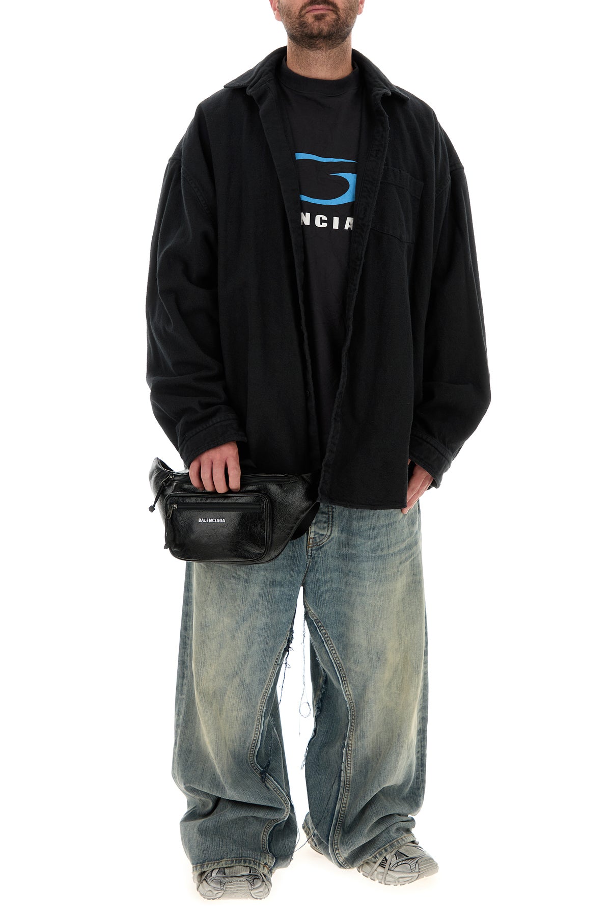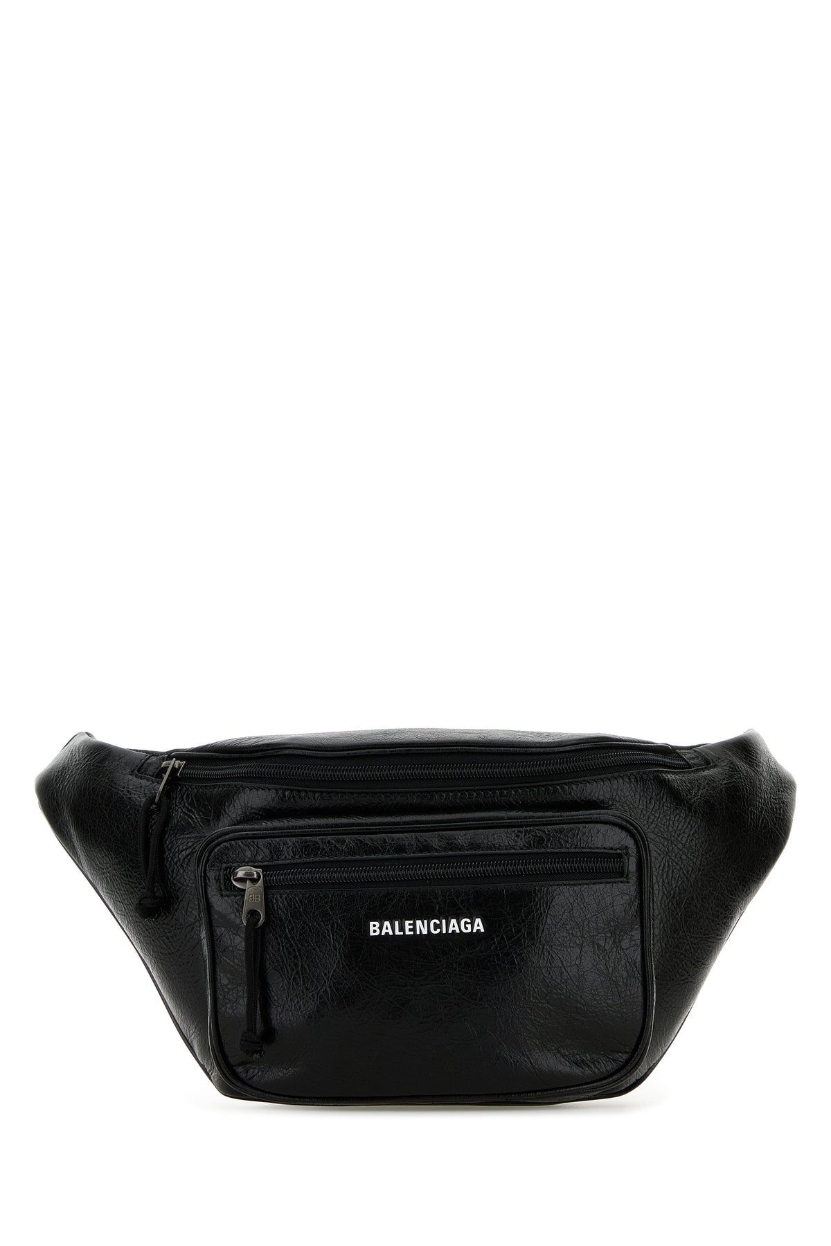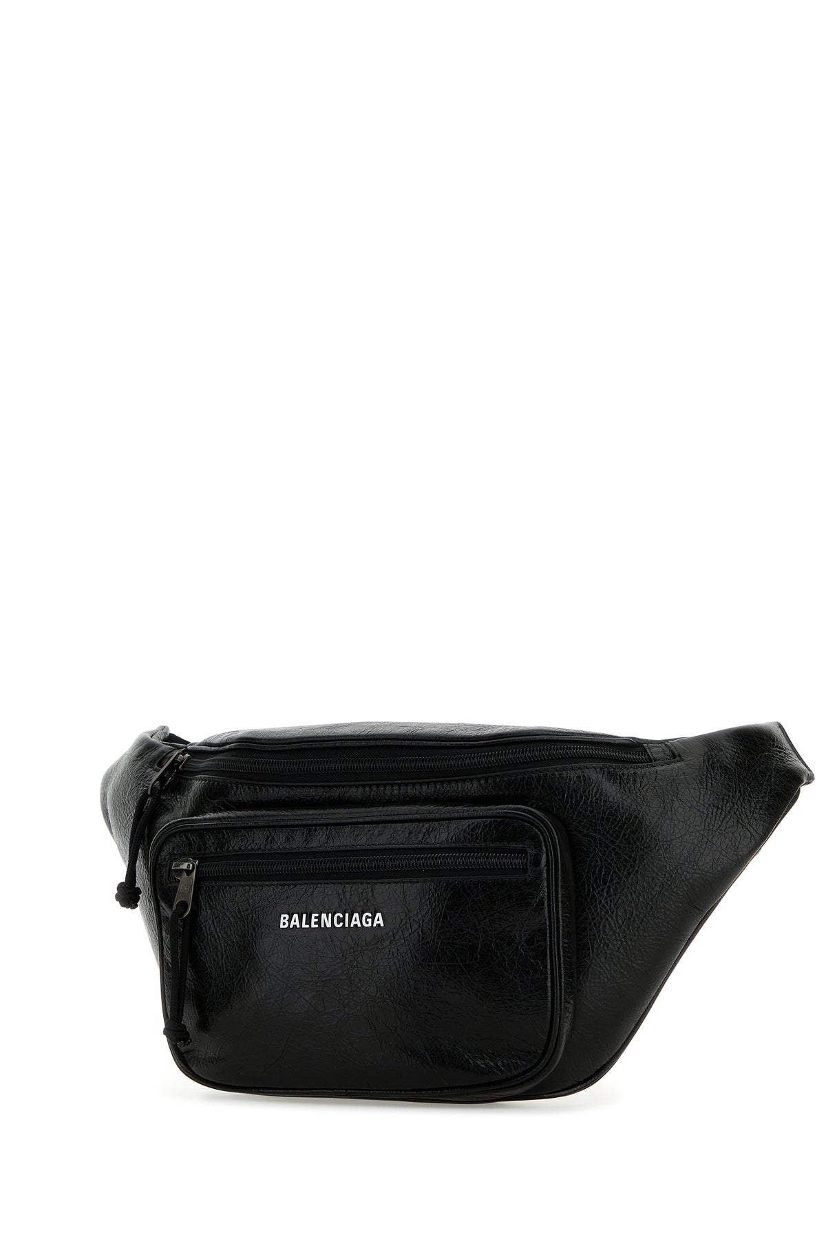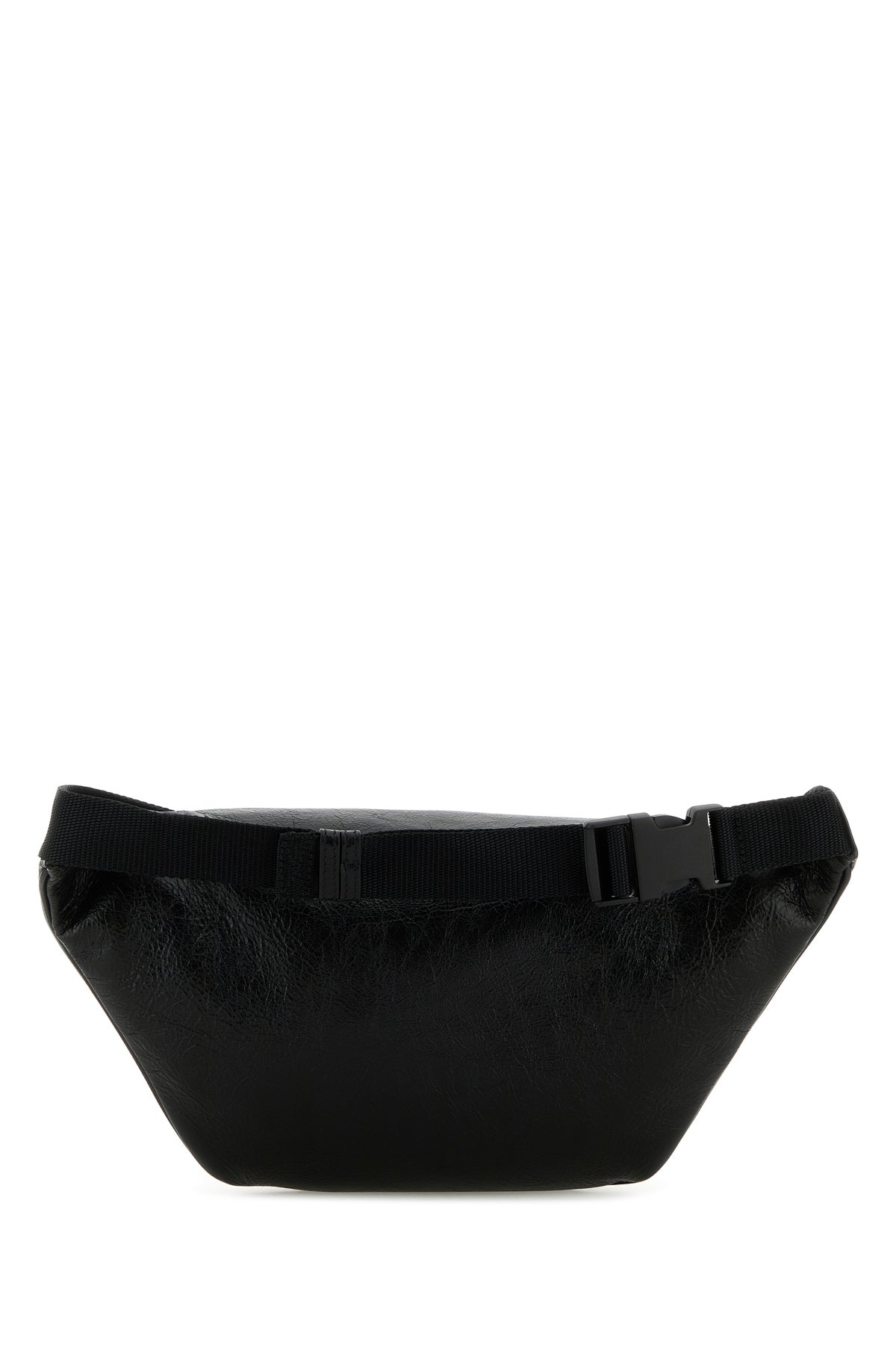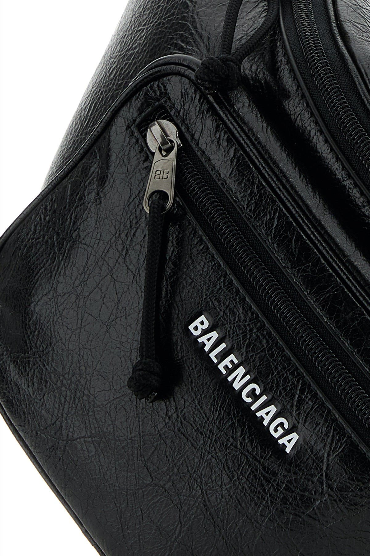 Belt bag realized in creased leather characterized by contrasting printed logo at the front.