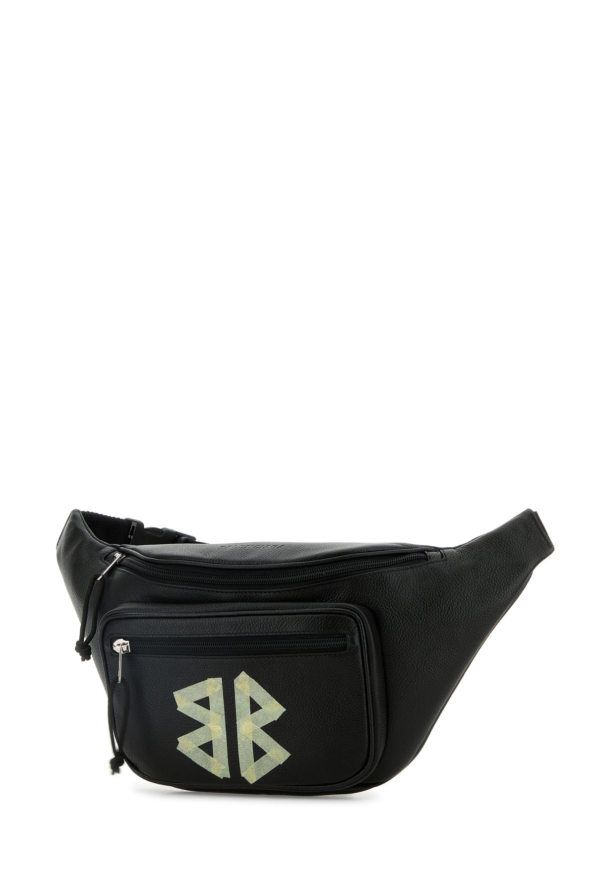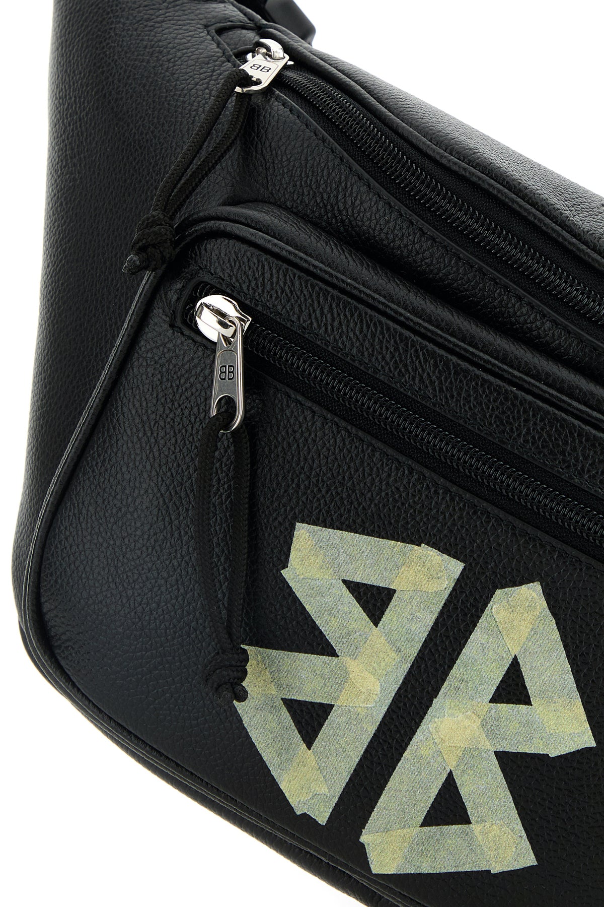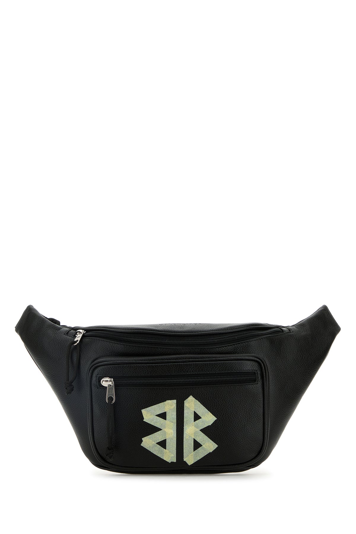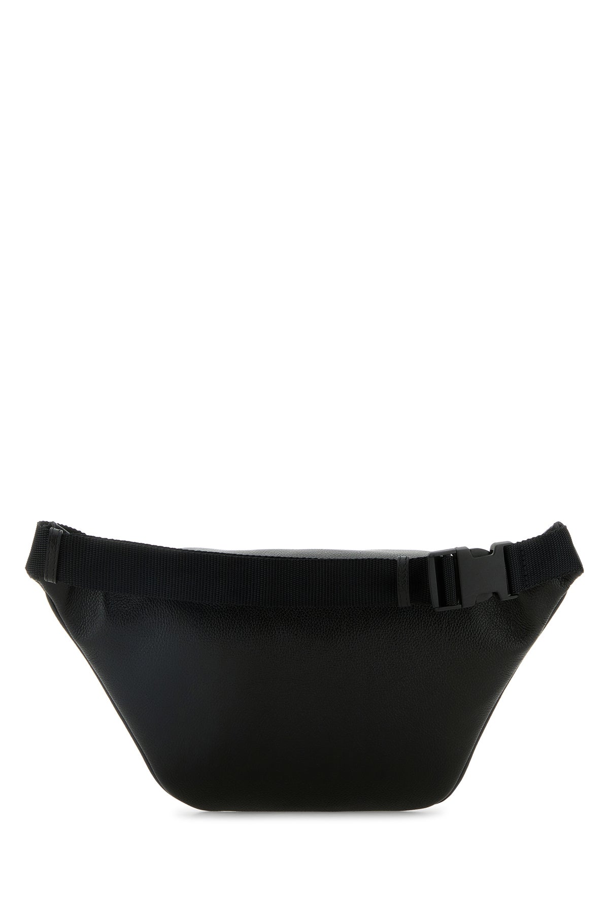 Belt bag realized in pebble leather characterized by contrasting logoed print at the front and embossed logo at the top.