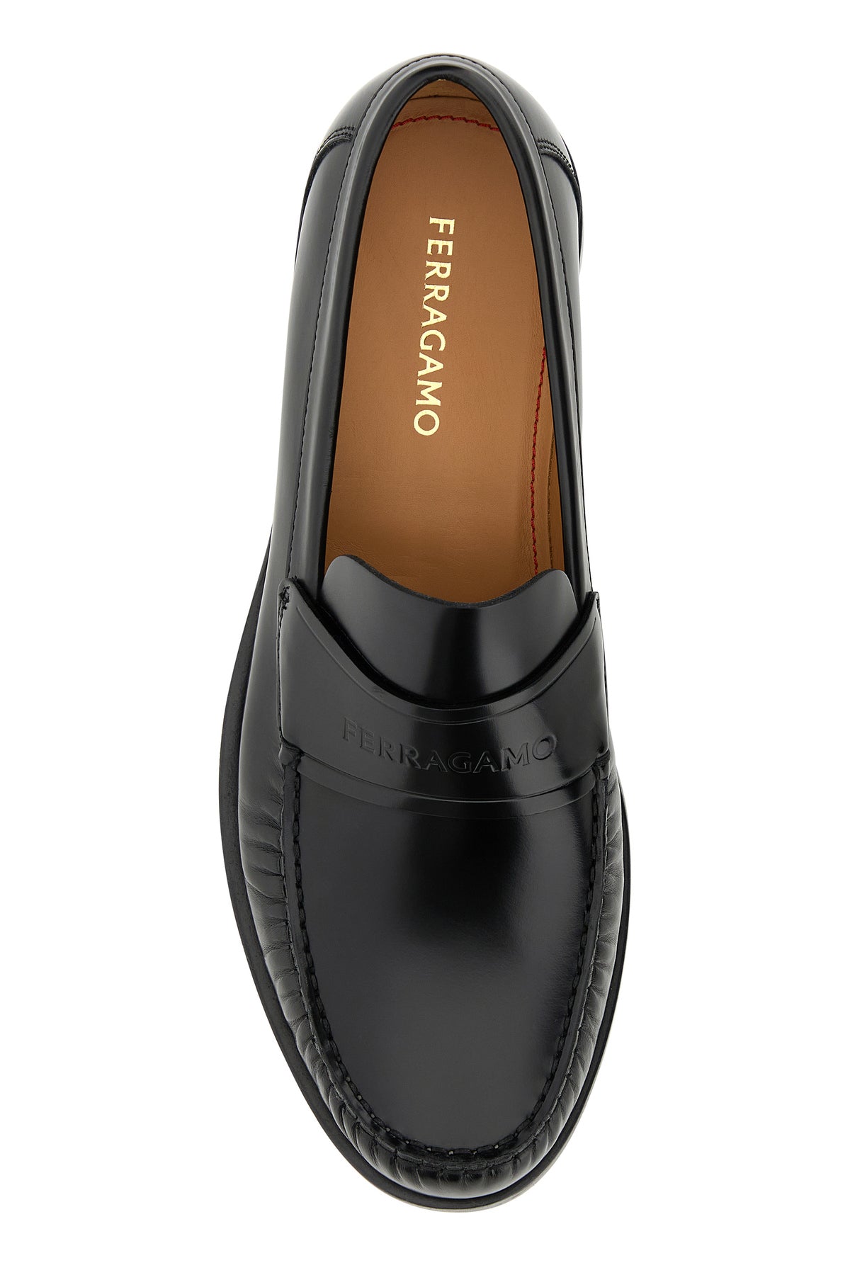 Loafers realized in polished-finish smooth calf leather characterized by embossed logo on the vamp.