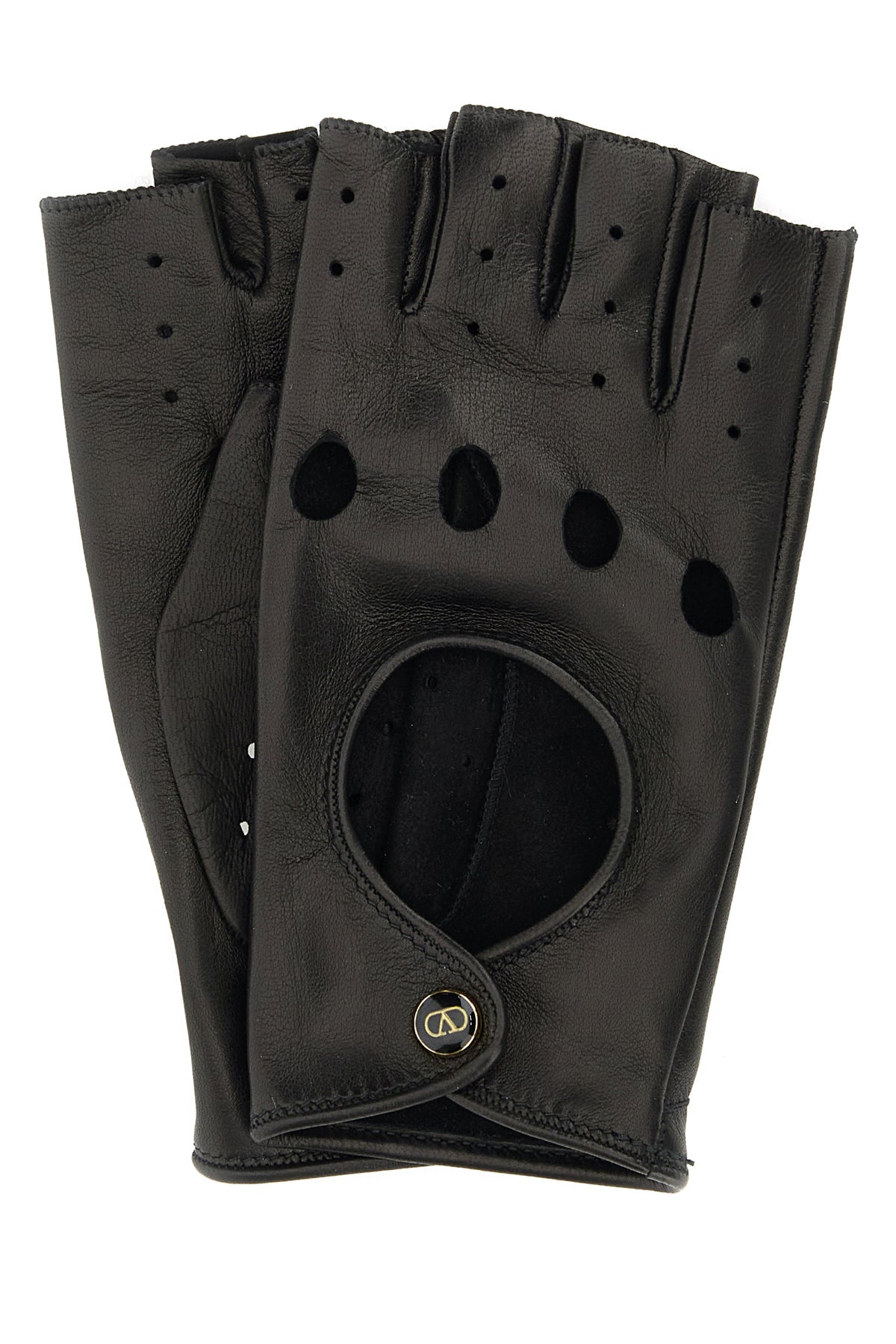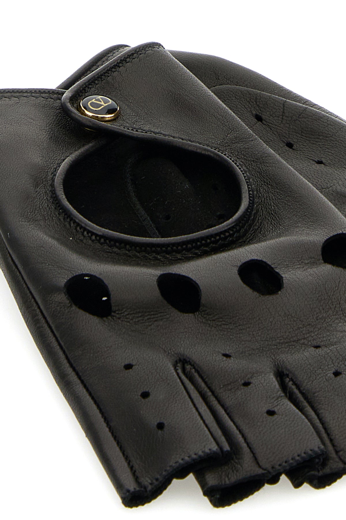 Fingerless gloves realized in smooth lamb leather characterized by cut-out details at the front.