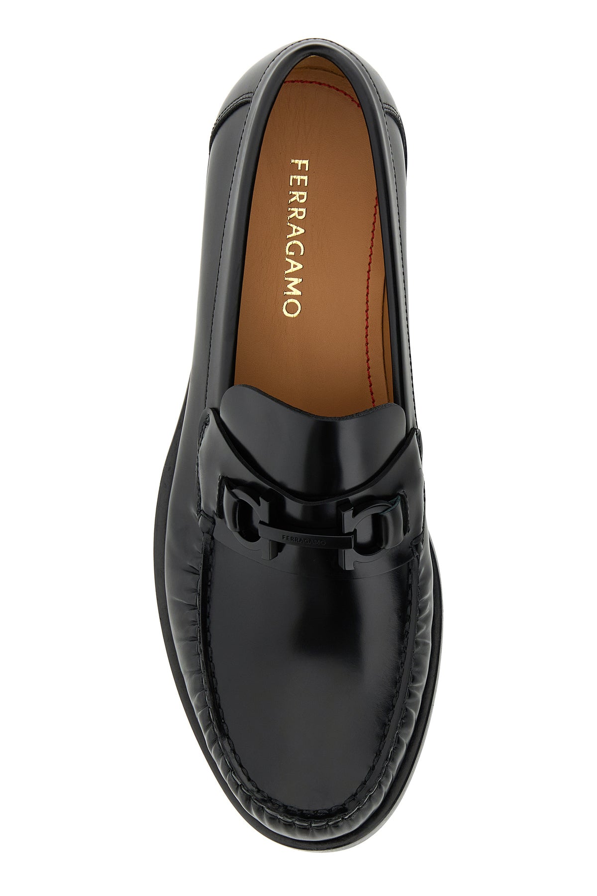 Loafers realized in polished-finish smooth calf leather enriched by metal Gancini detail on the vamp.