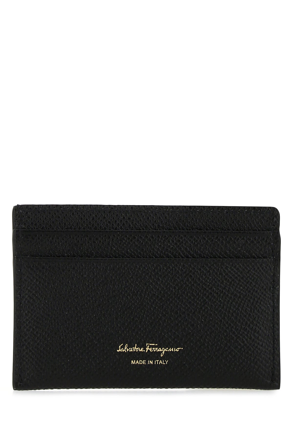 Card holder realized in grained calf leather characterized by printed logo at the back enriched by metal Gancini detail at the front.
