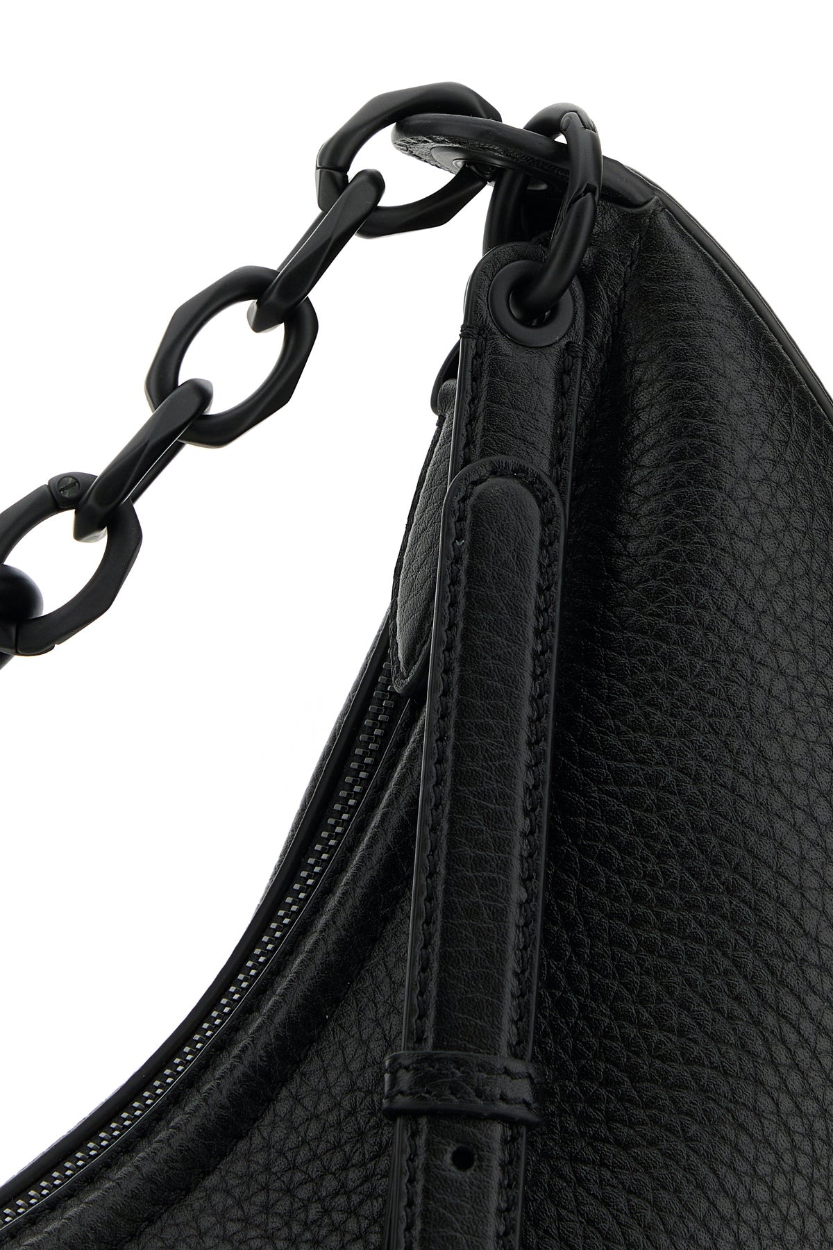 Handbag realized in pebble leather characterized by embossed logo at the front.