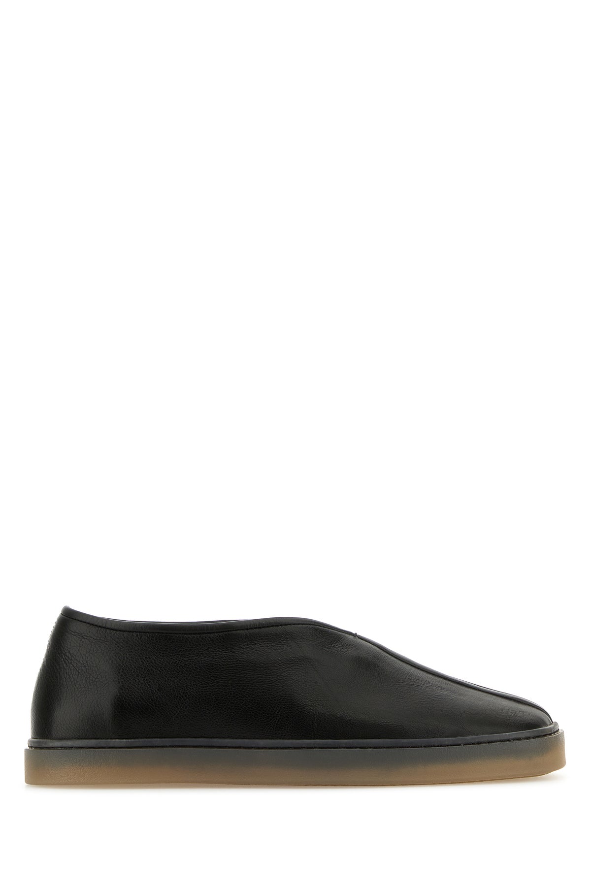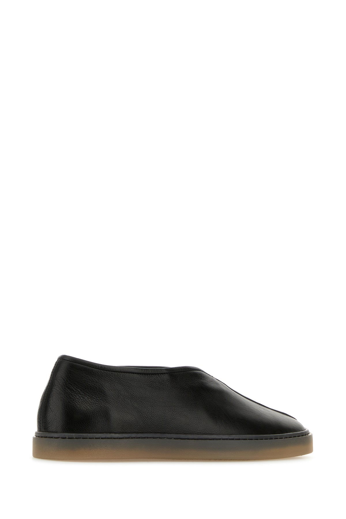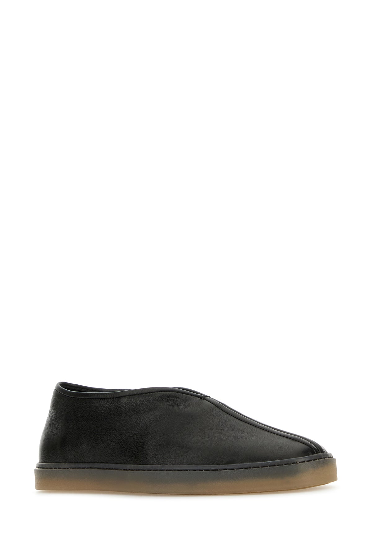 Black leather Linoleum slip ons