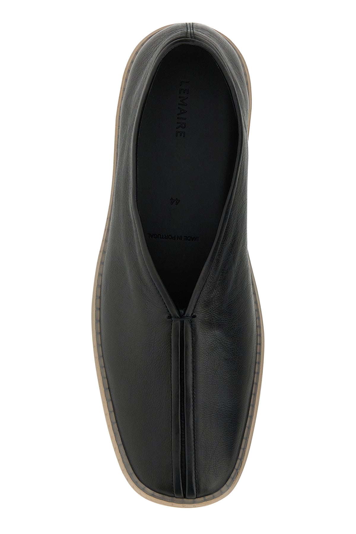 Slip ons realized in pebble bovine leather.