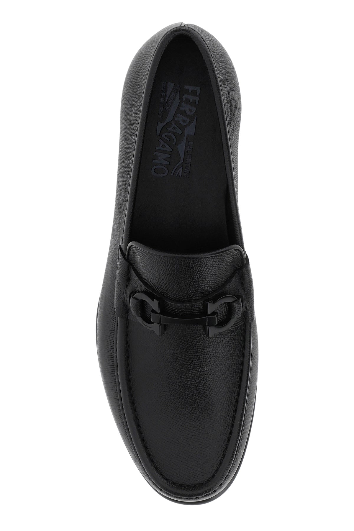 Loafers realized in pebble calf leather enriched by enamelled metal Gancini horsebit on the vamp.