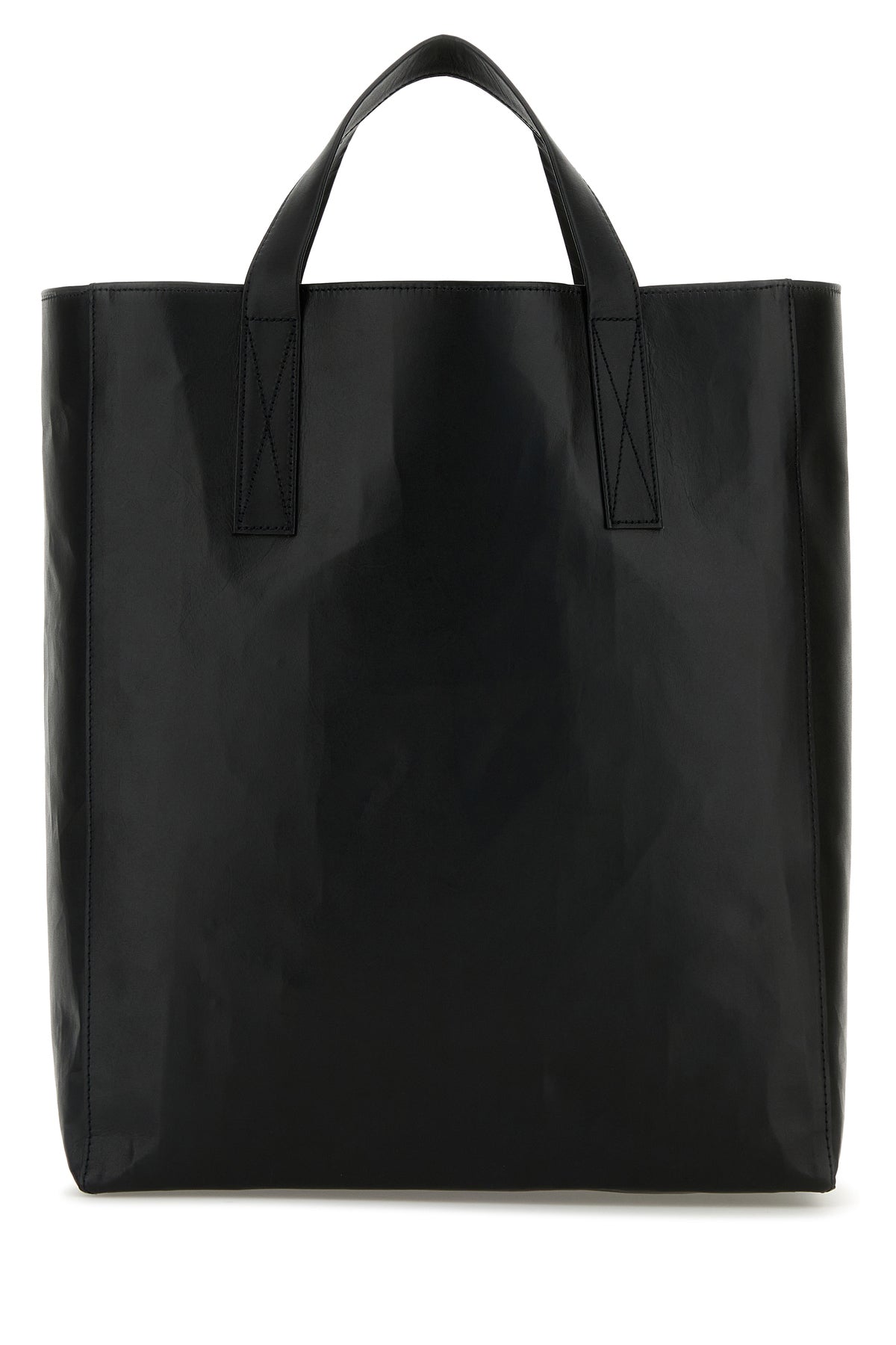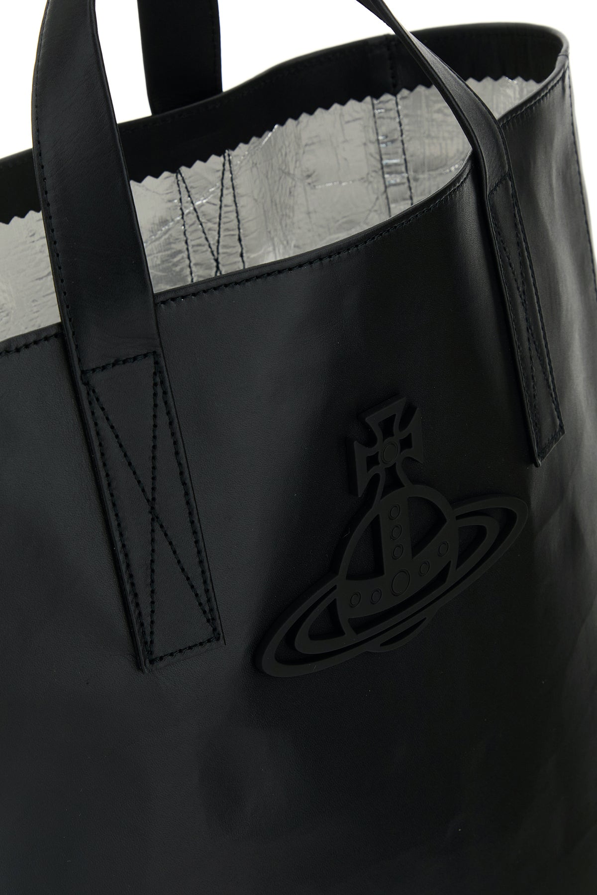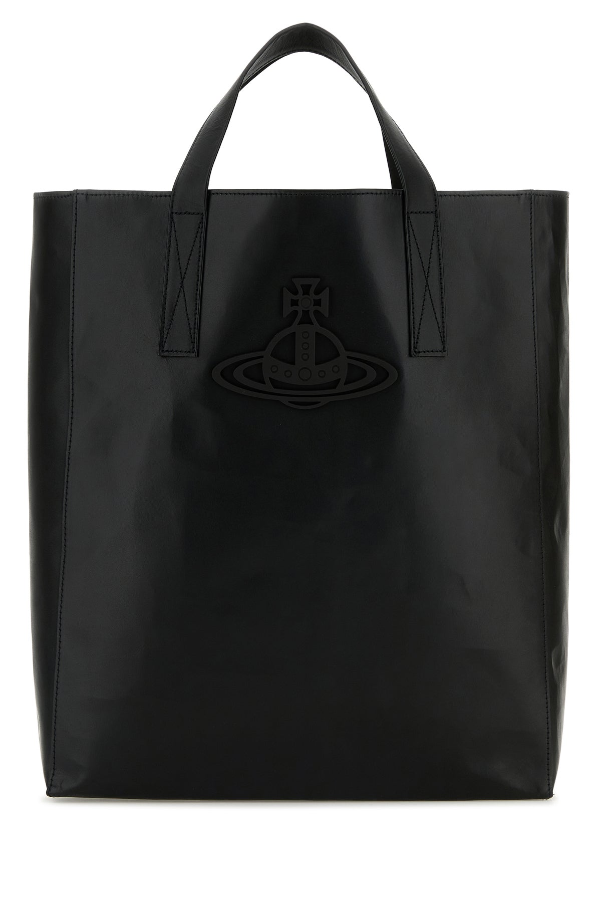 Shopping bag realized in smooth leather enriched by Orb metal detail at the front.