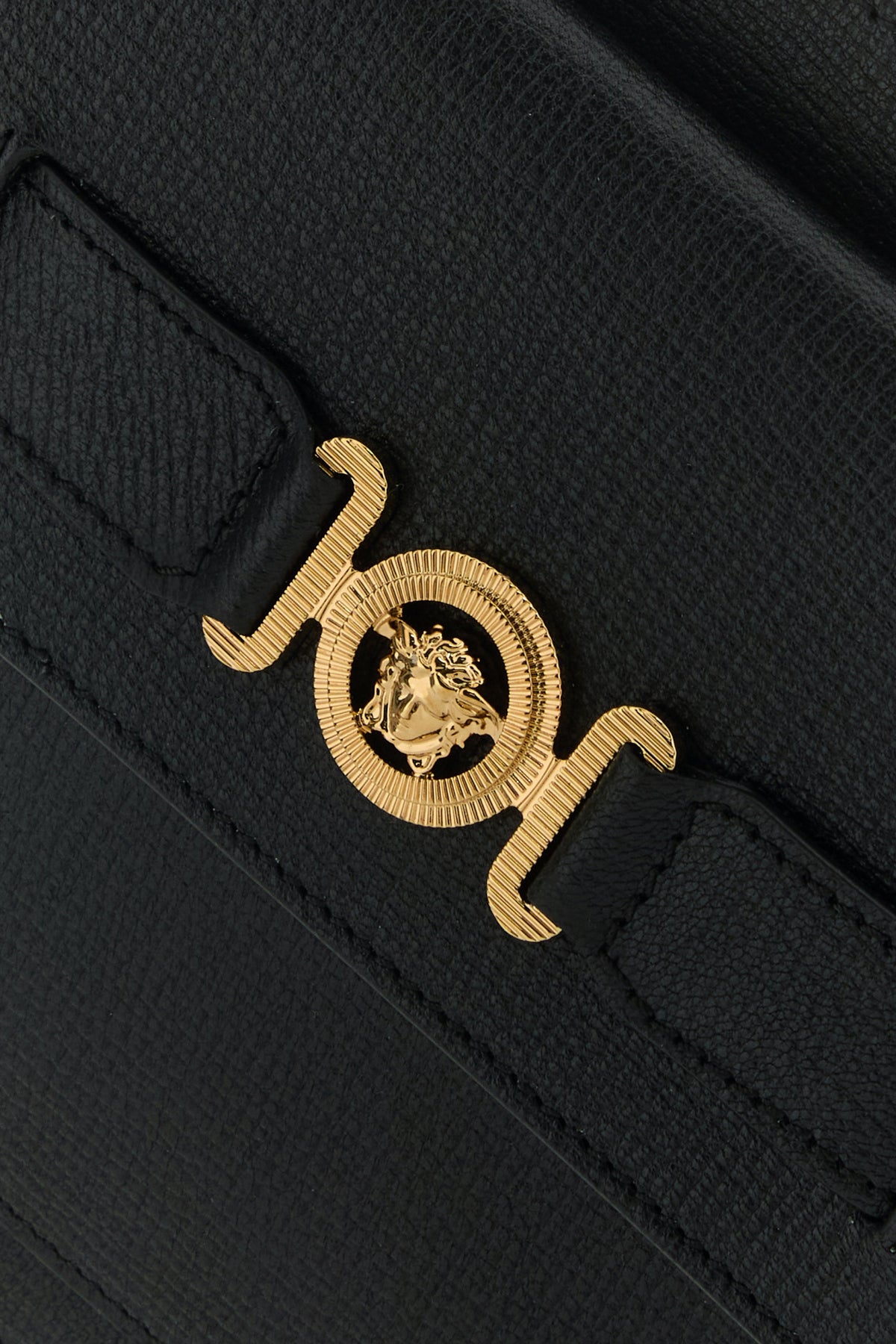Black leather Medusa Biggie clutch