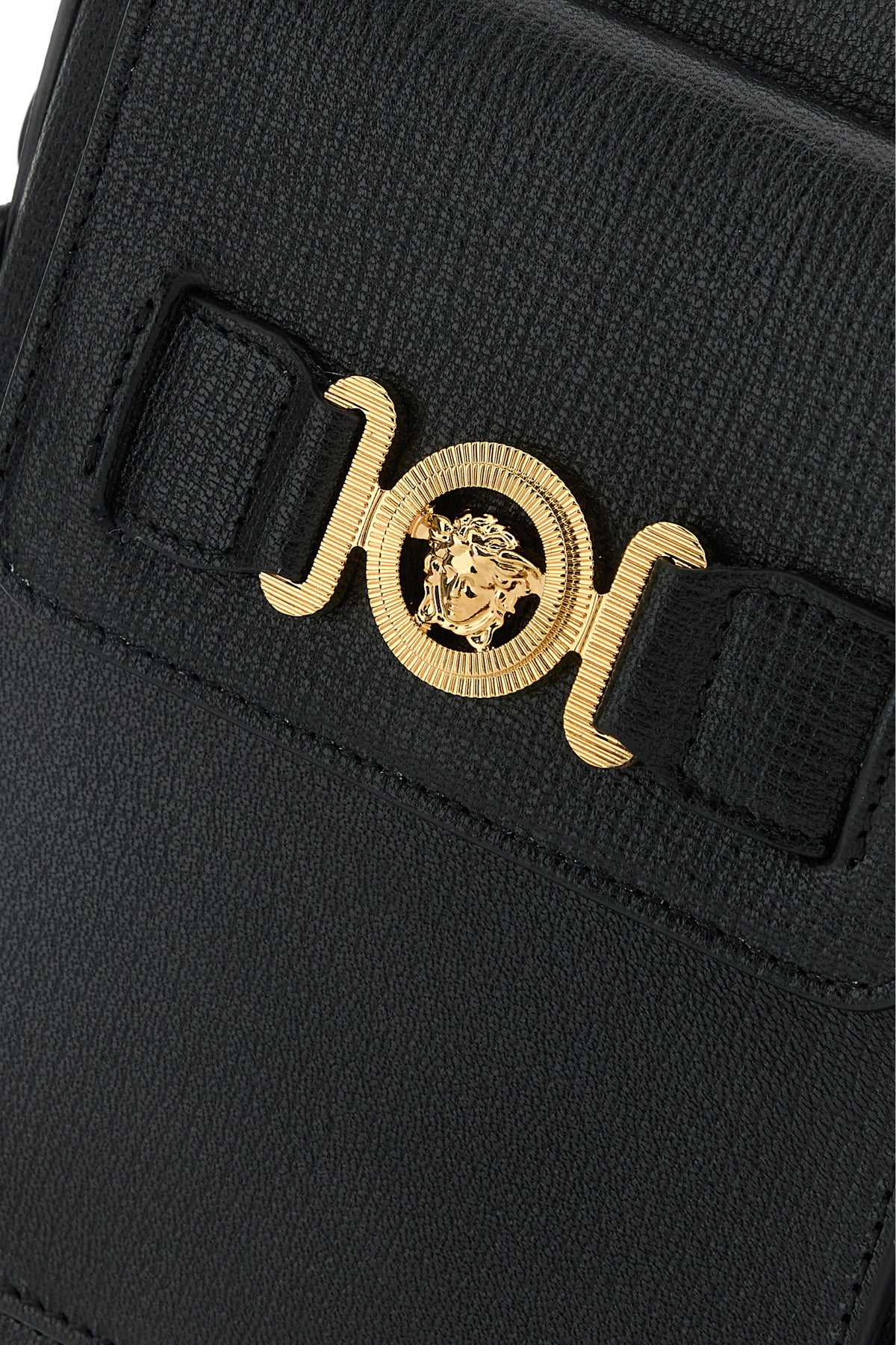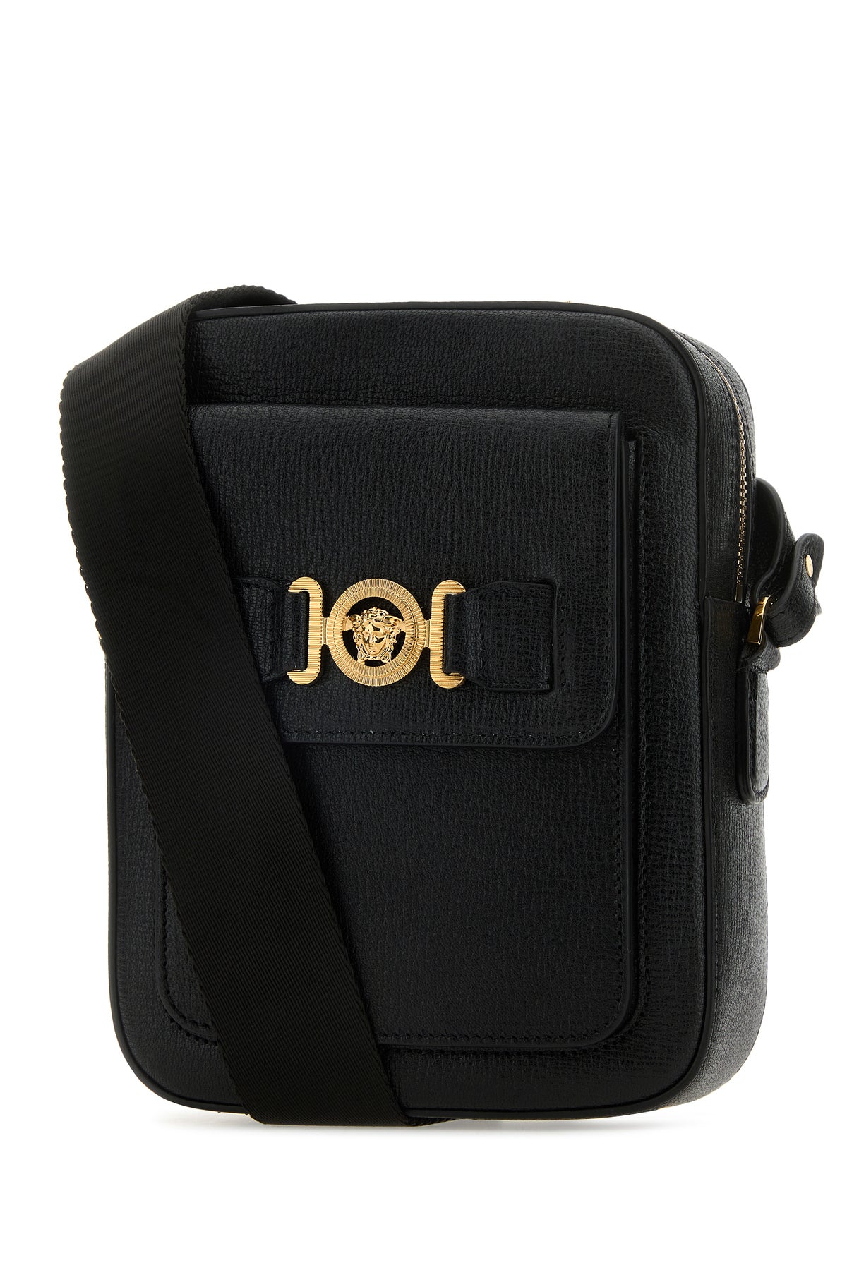 Crossbody bag realized in slightly pebble ovine leather characterized by printed laminated logo at the back enriched by metal Medusa Biggie detail at the front.