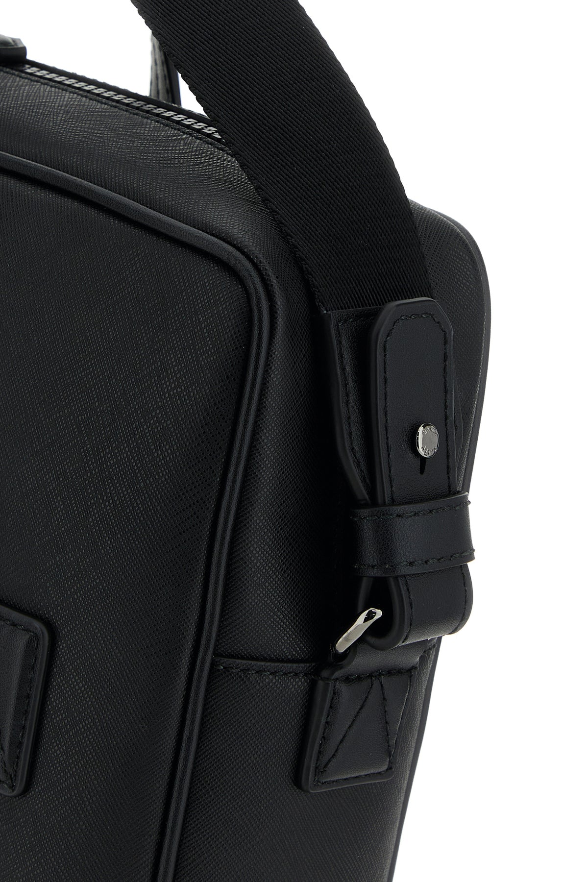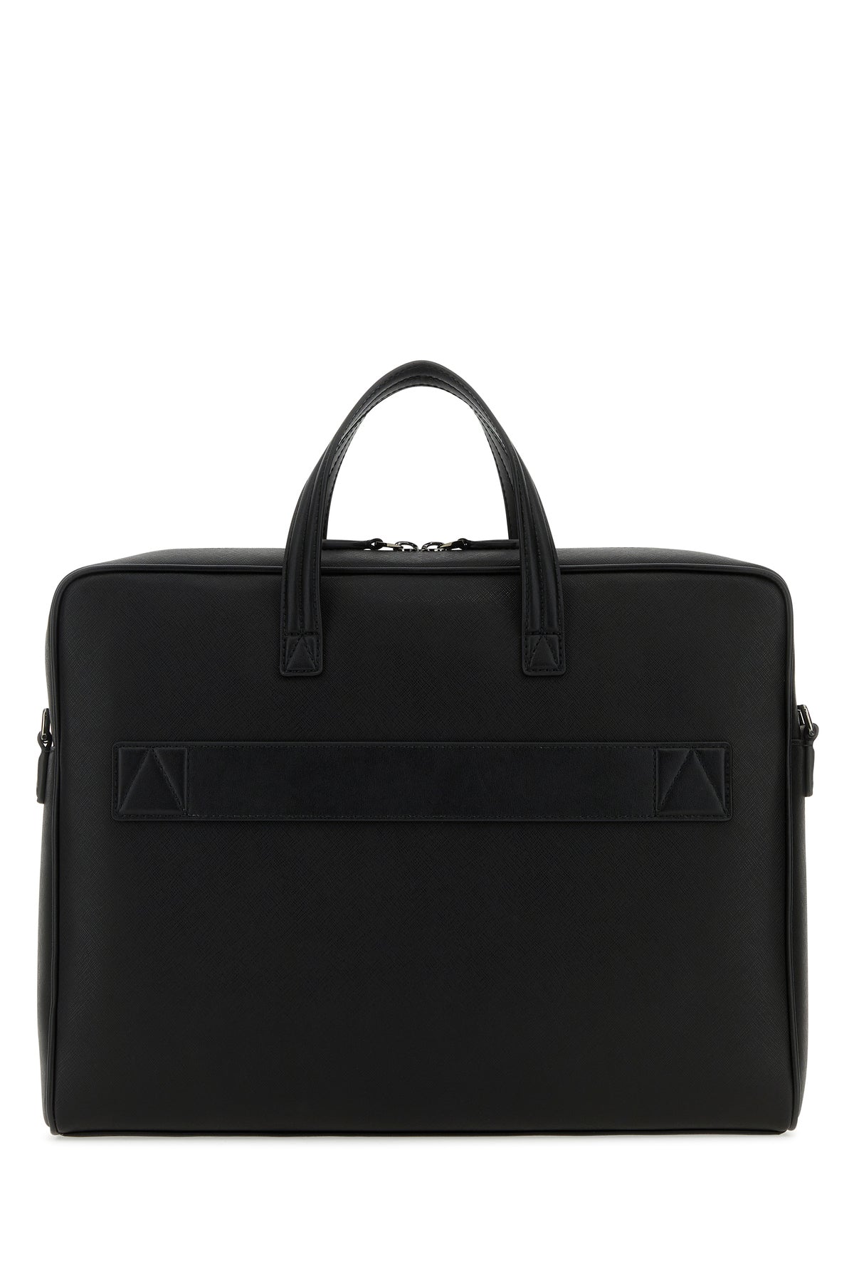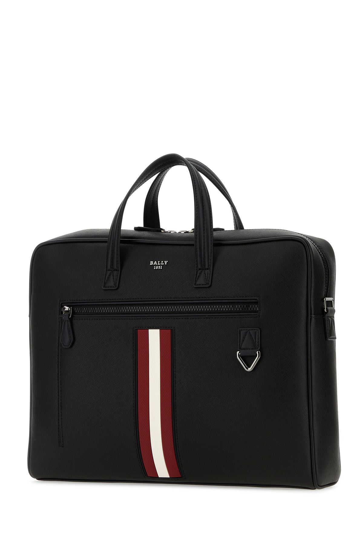 Briefcase realized in grained leather enriched by Bally Stripe detail and metal lettering logo at the front.