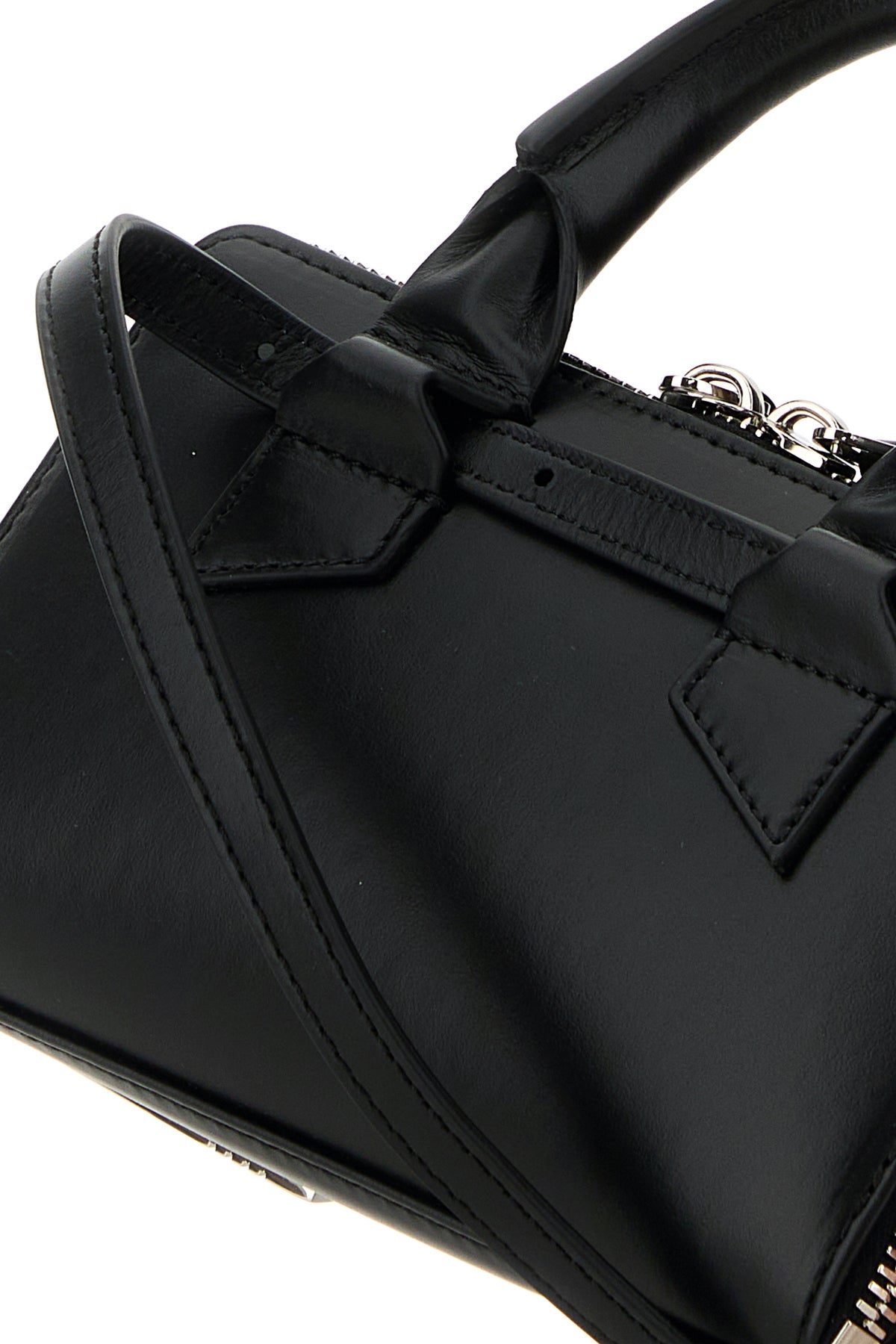 Handbag realized in smooth calf leather characterized by laminated printed logo at the front.