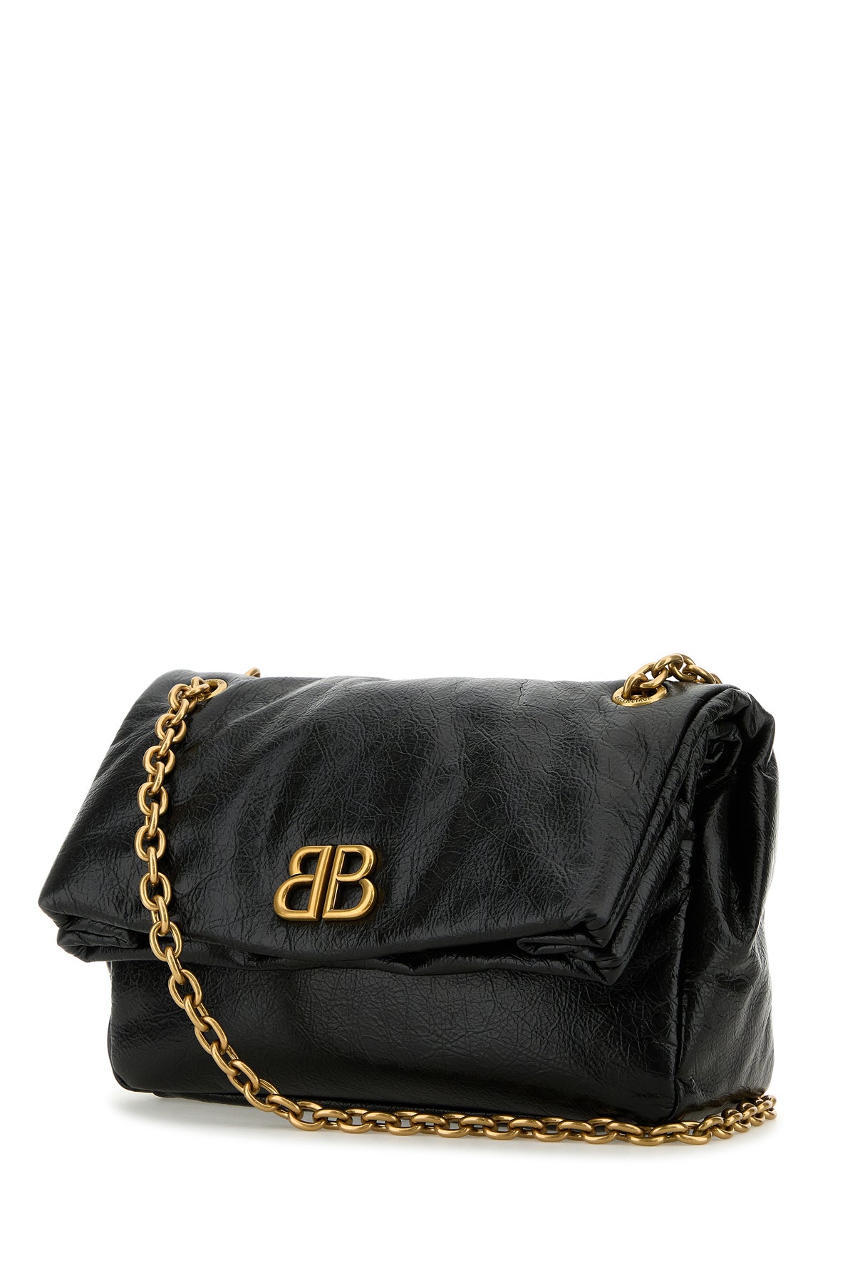 Shoulder bag realized in polished-finish creased effect Arena calf leather enriched by metal BB detail at the front.