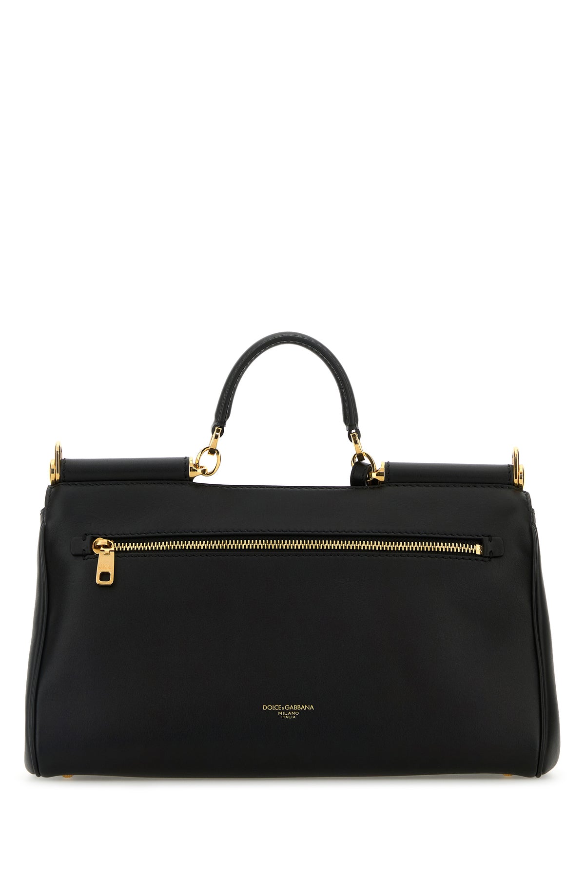 Handbag realized in calf leather enriched by logoed metal plate at the front.