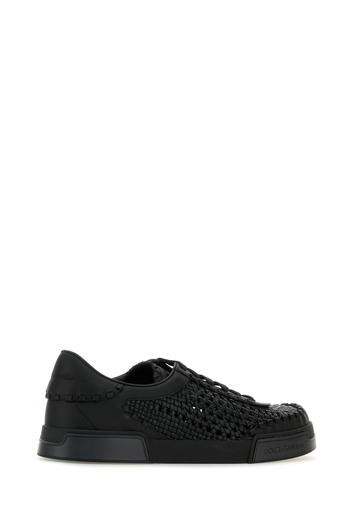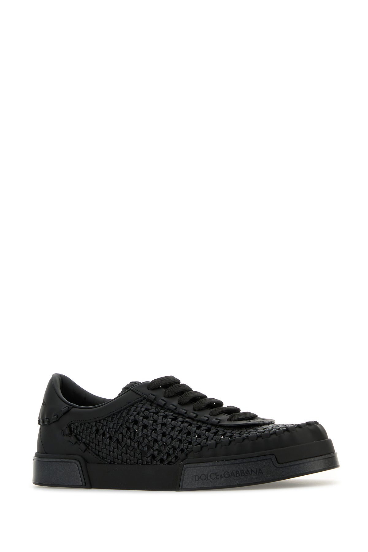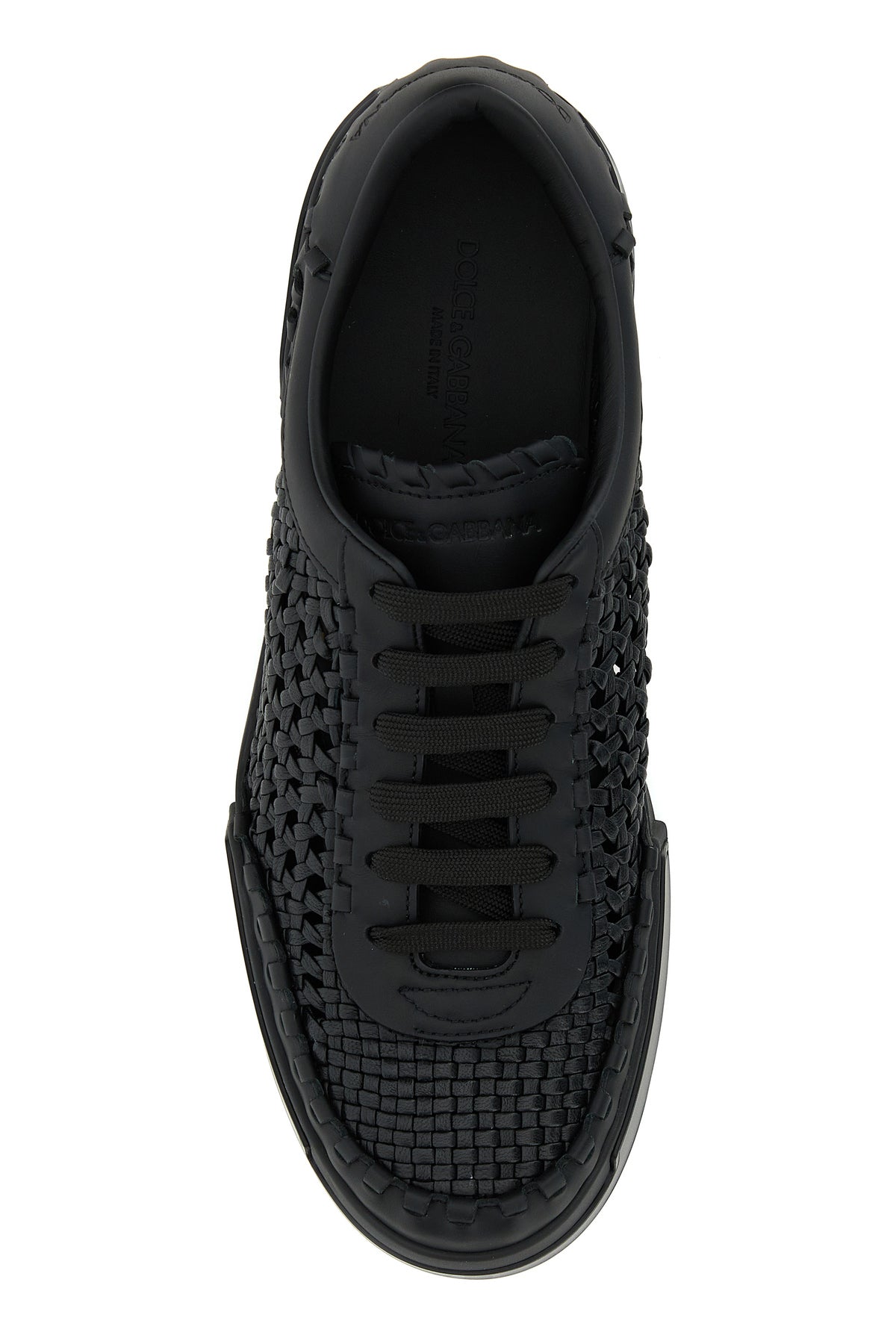 Sneakers realized in woven leather characterized by embossed logo on the side and at the back.