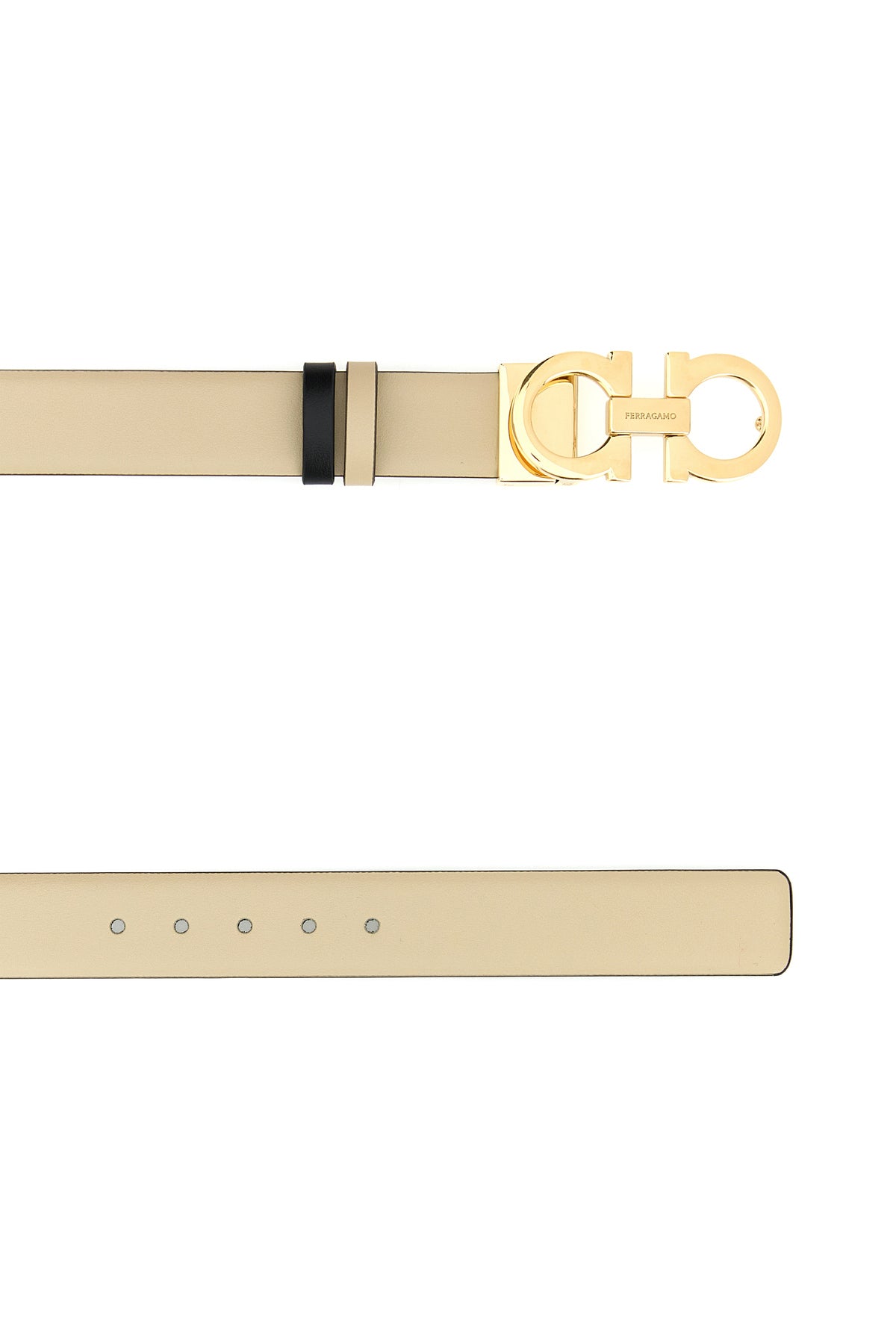Reversible belt realized in smooth calf leather characterized by Gancini buckle.