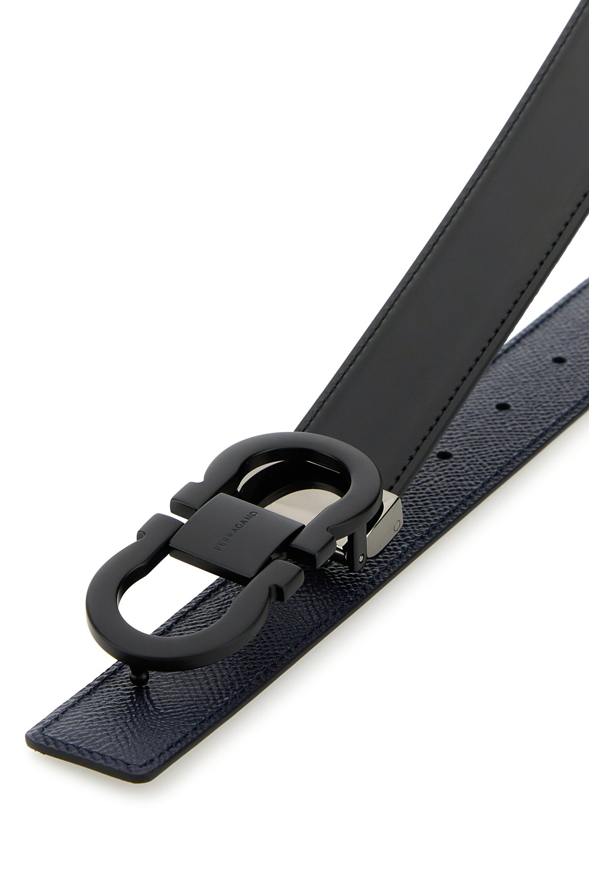 Black leather reversible belt