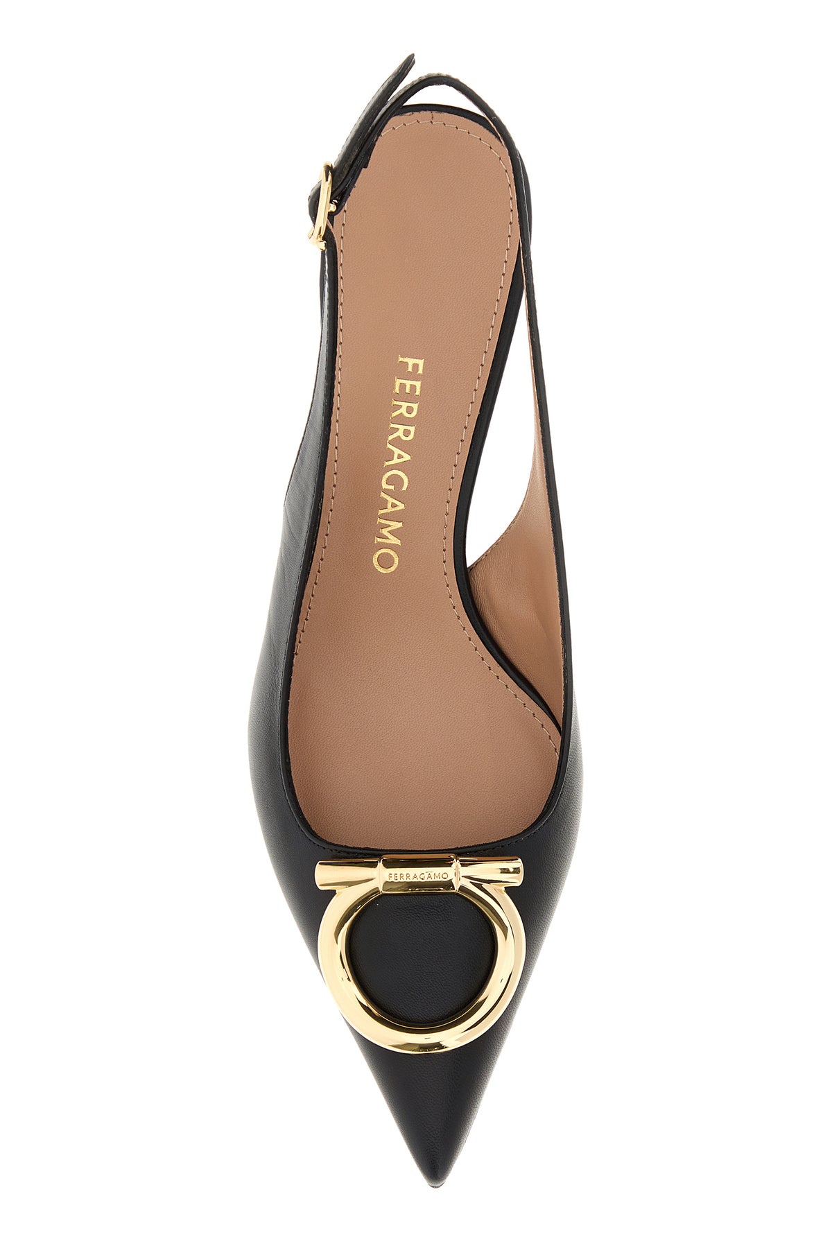 Pumps realized in pebble leather enriched by Gancini metal detail on the instep.