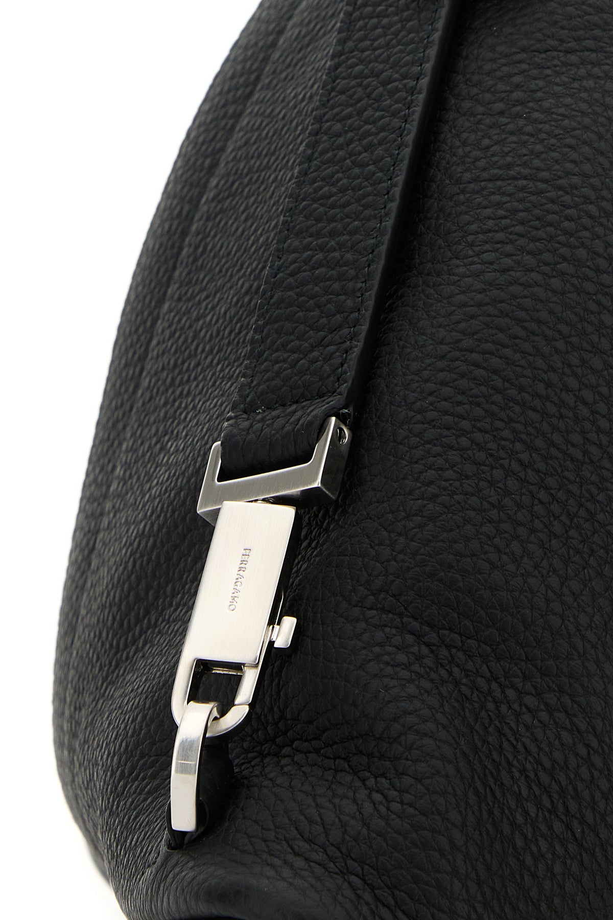 Crossbody bag realized in pebble healthier characterized by Gancini snap-fit closure.