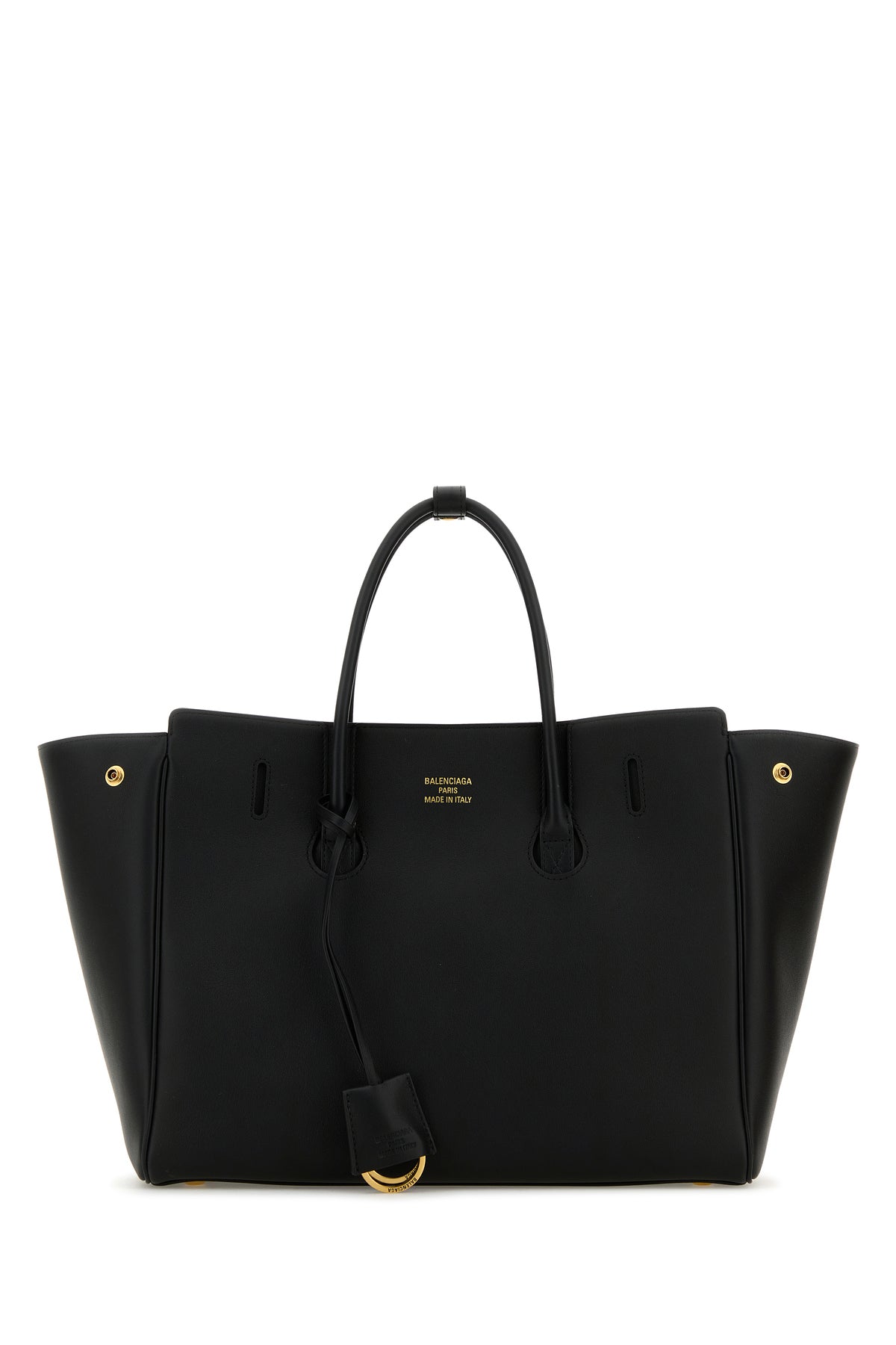 Handbag realized in smooth calf leather characterized by laminated printed logo at the front.