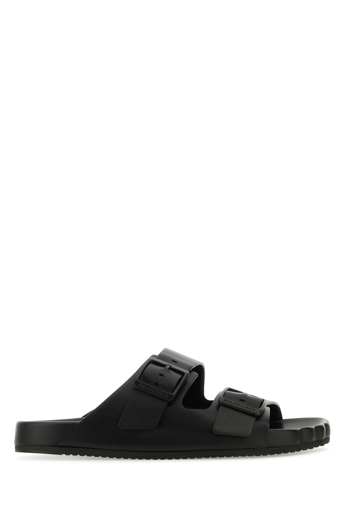 Slippers realized in smooth mat-finish calf leather characterized by moulded toe and adjustable straps on the instep.