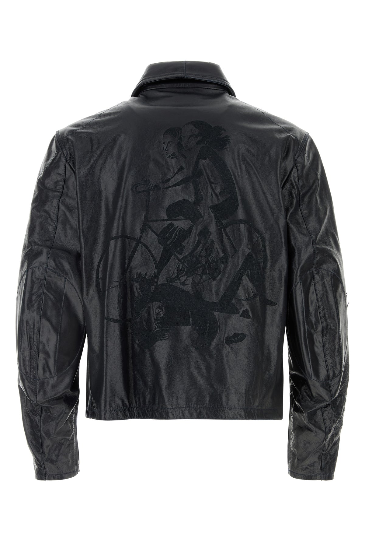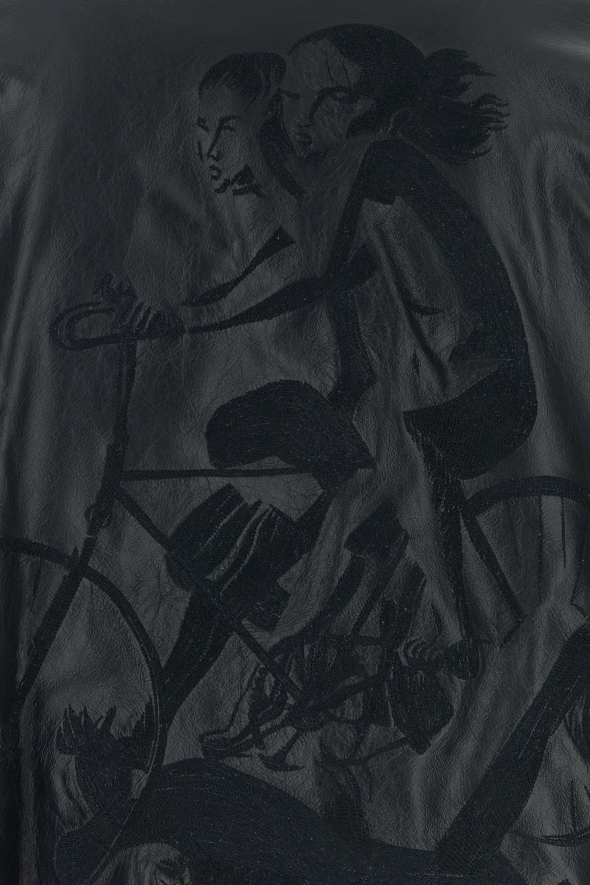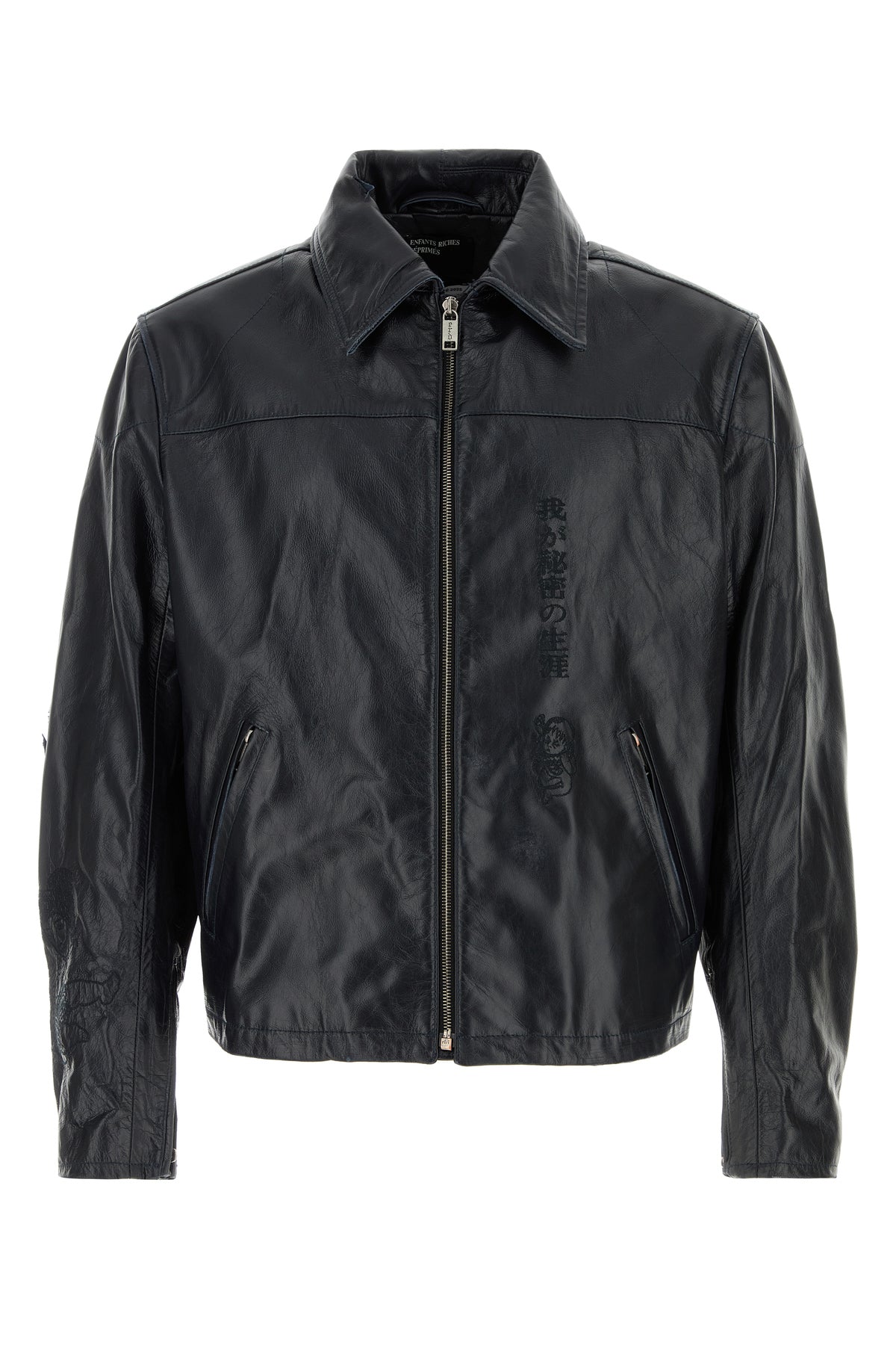 Jacket realized in creased-effect bovine leather characterized by tonal peculiar embroidery at the front, on the sleeve and at the back.