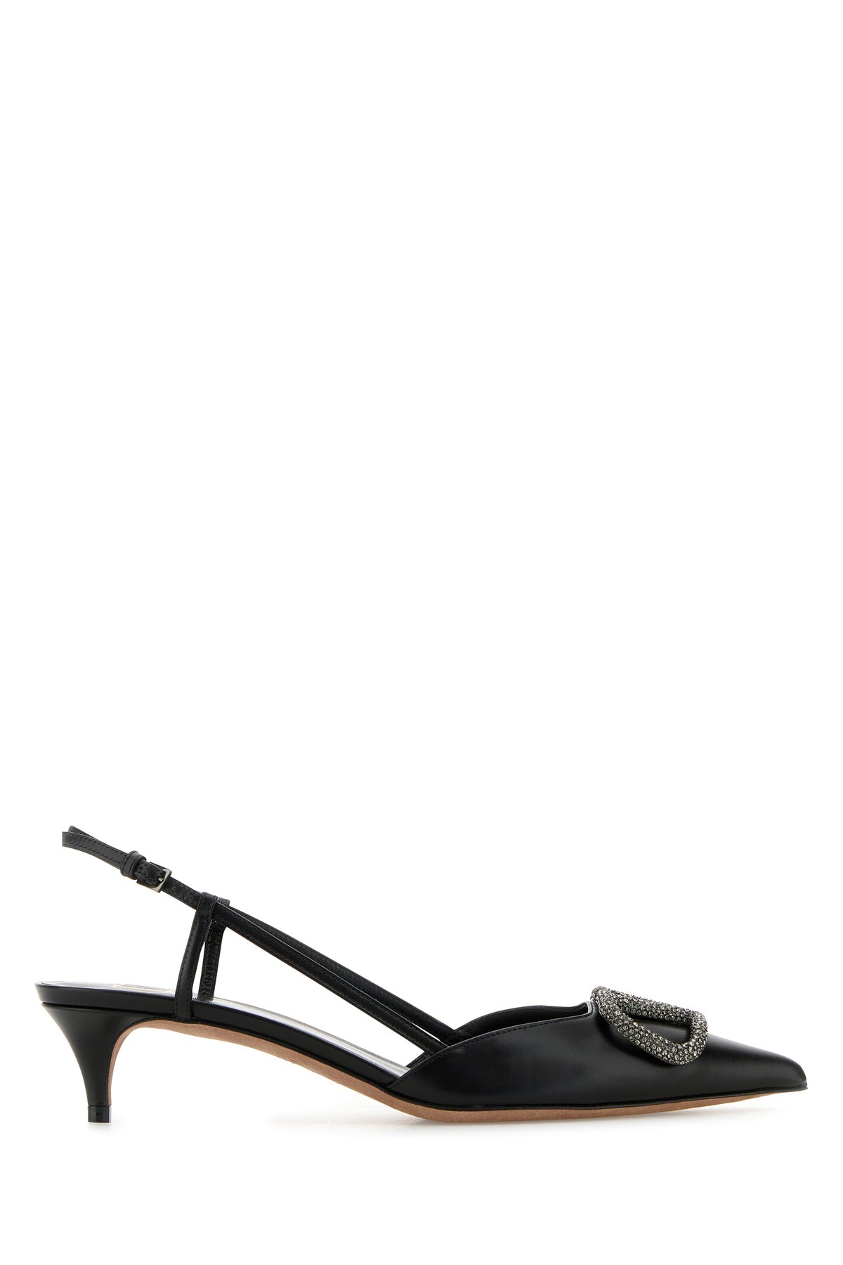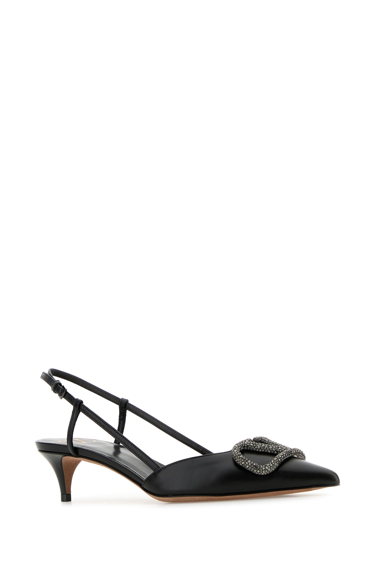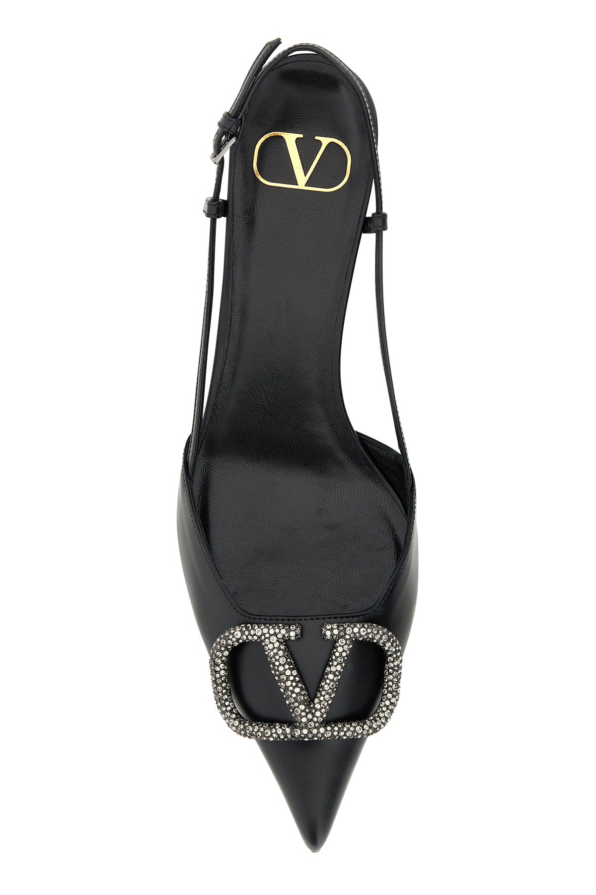 Slingback realized in smooth leather enriched by jewel VLogo detail at the front.