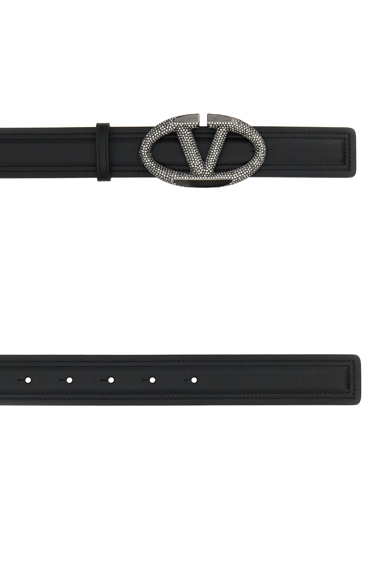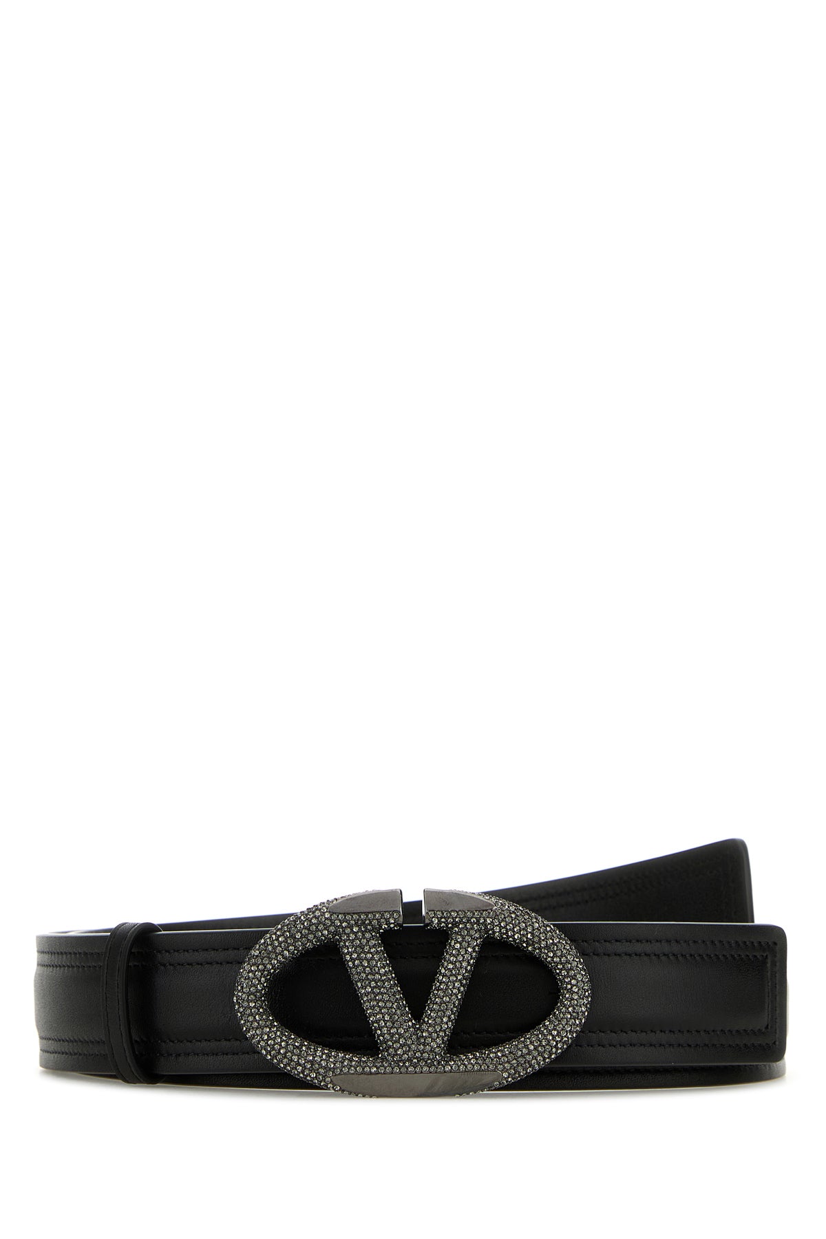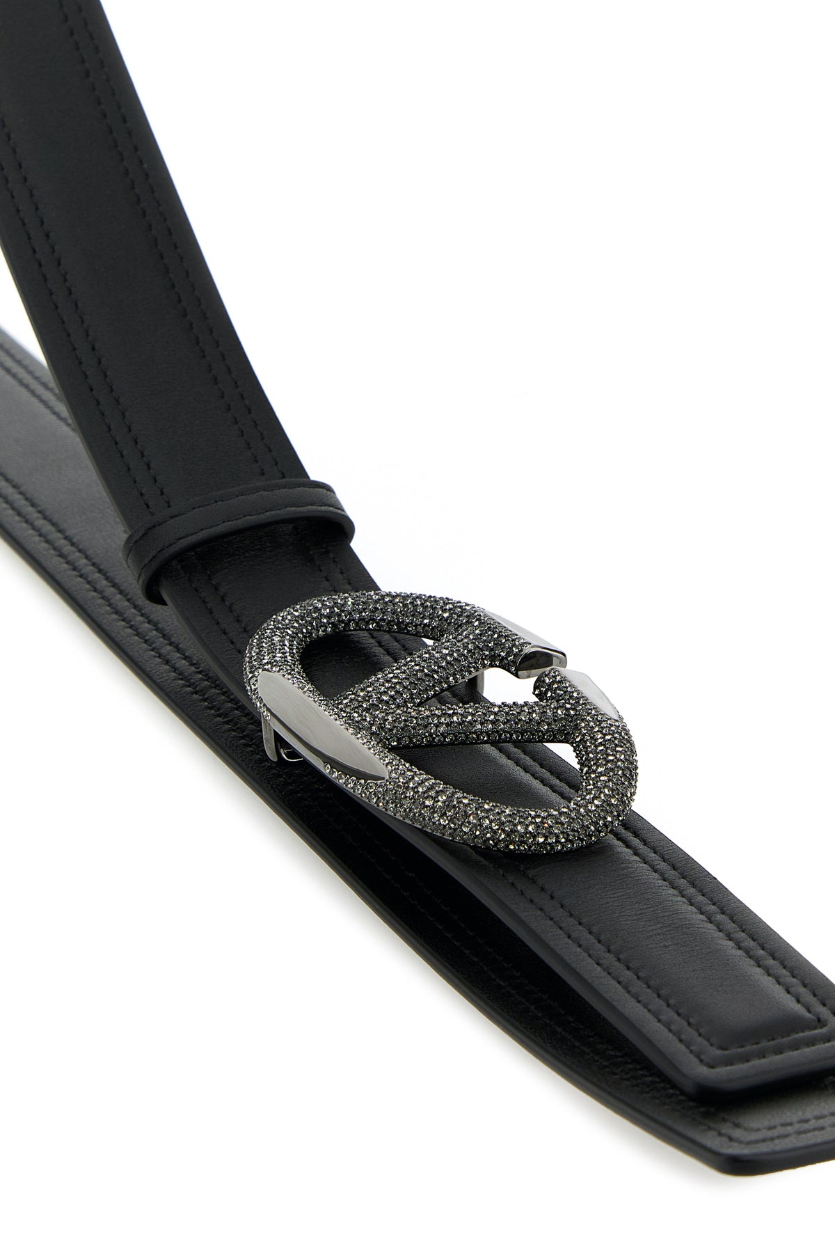 Belt realized in leather enriched by VLogo Signature buckle entirely covered by rhinestones.