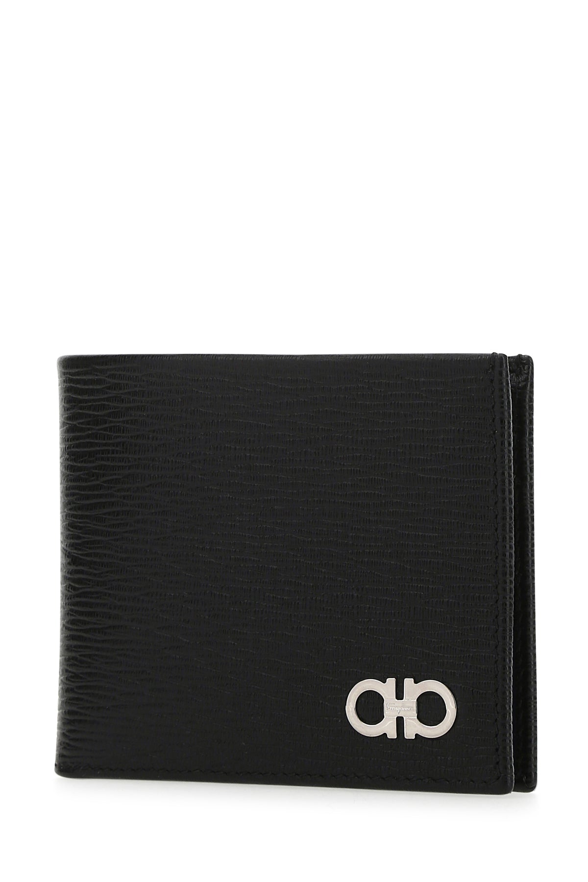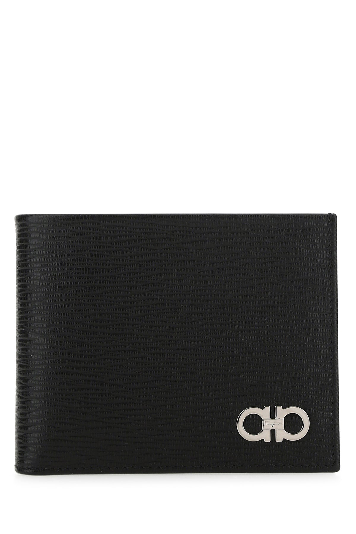 Wallet realized in grained leather enriched by metal Gancini detail at the front.