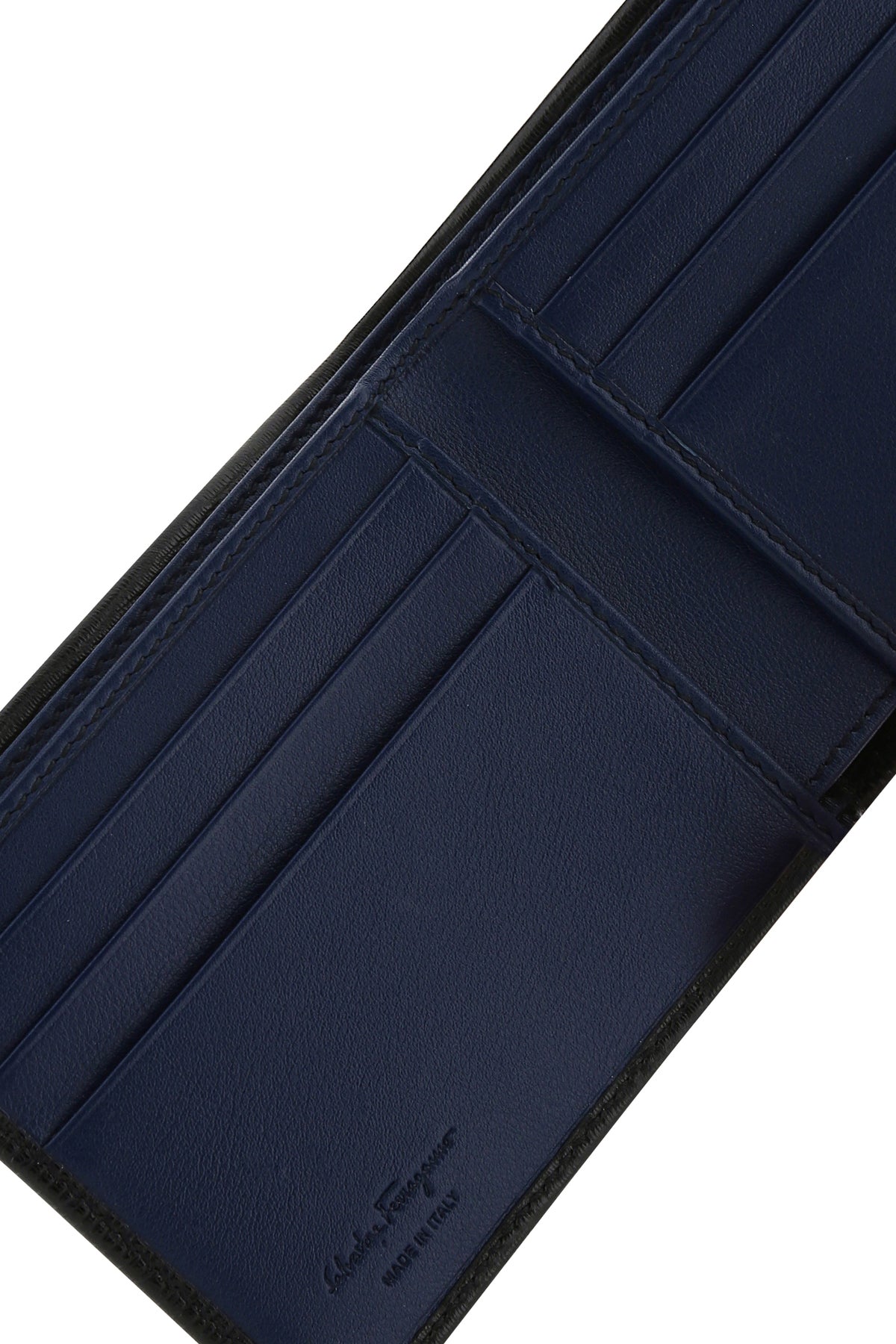 - Interior with two bill compartments, two slit pockets and six credit card slots