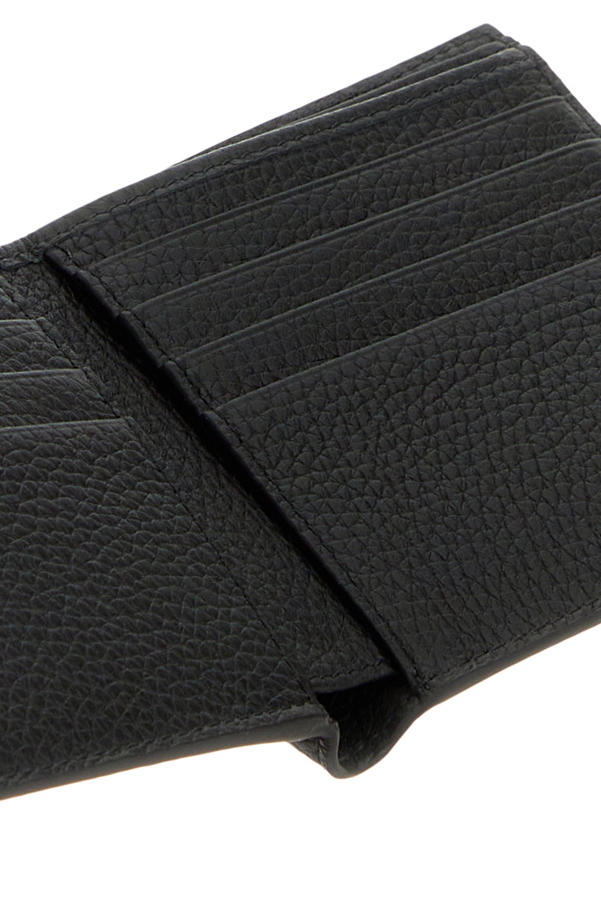Wallet realized in pebble leather characterized by contrasting printed logo at the front enriched by tricolor band at the front.