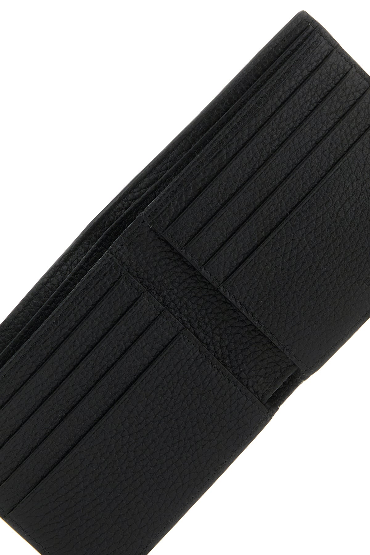 Wallet realized in pebble leather characterized by contrasting printed logo at the front enriched by tricolor band at the front.