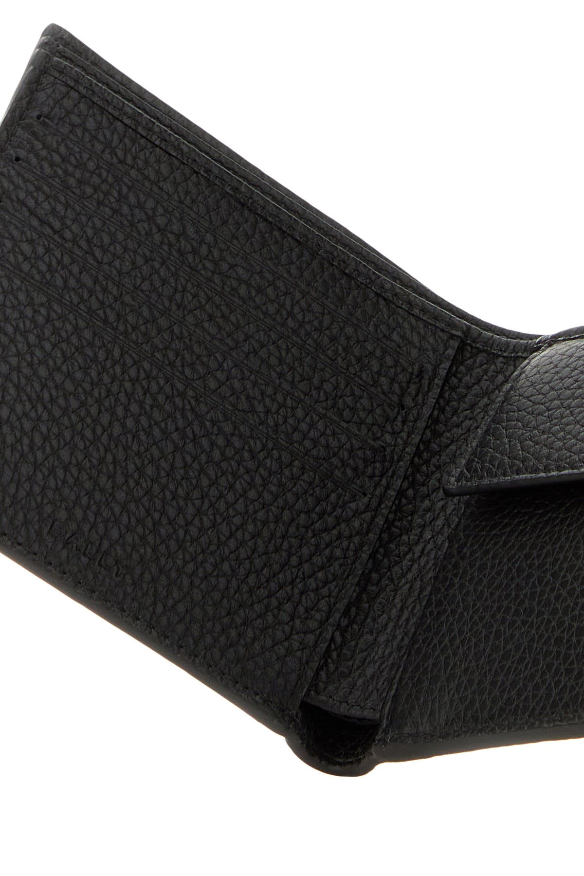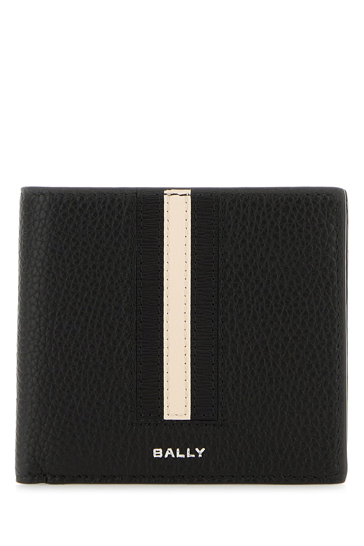 Wallet realized in pebble leather characterized by contrasting printed logo at the front enriched by tricolor band at the front.