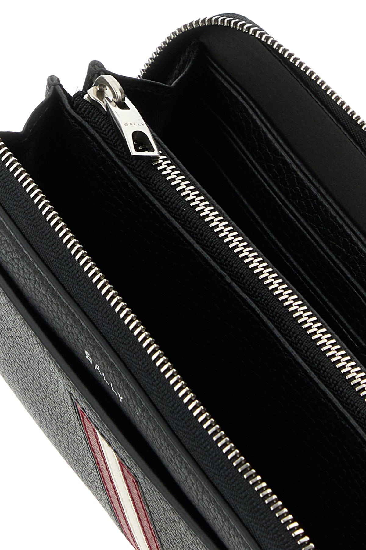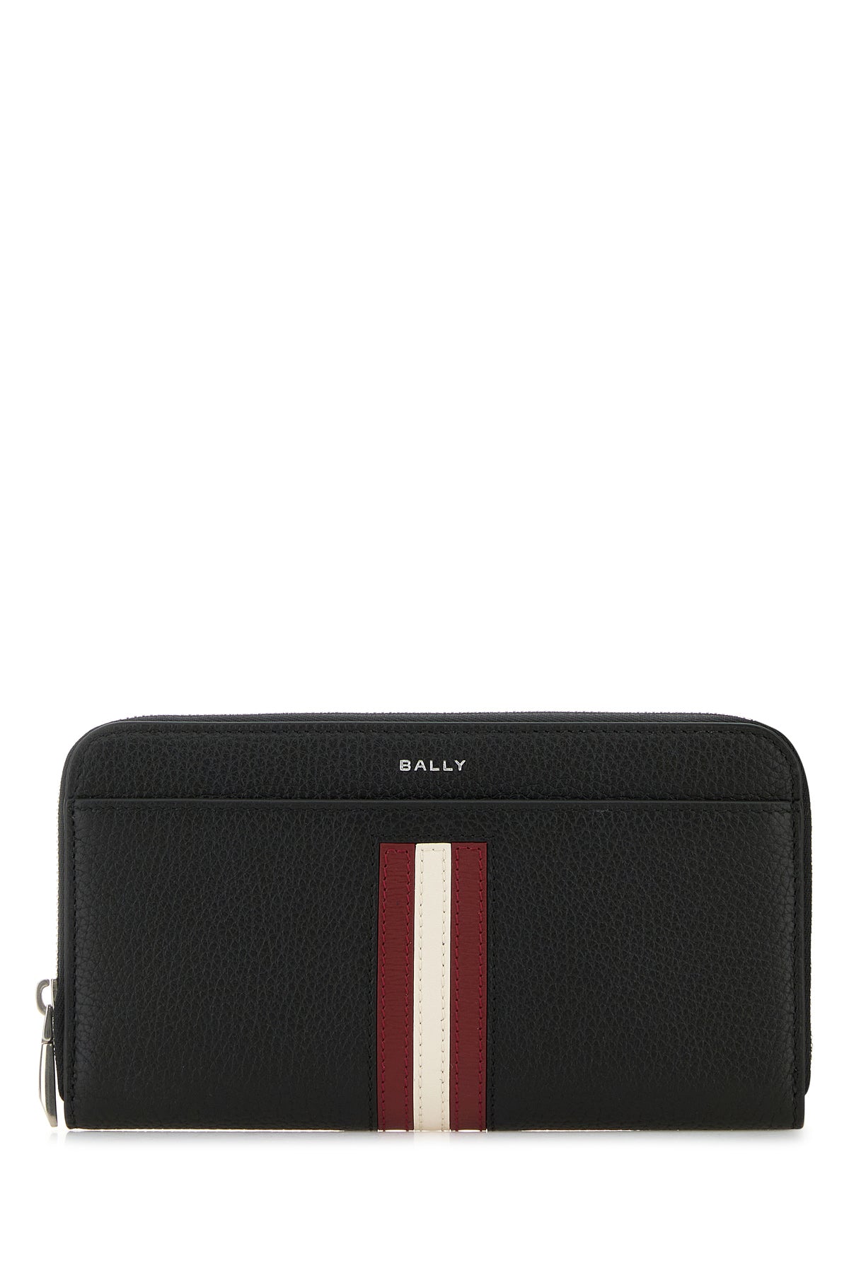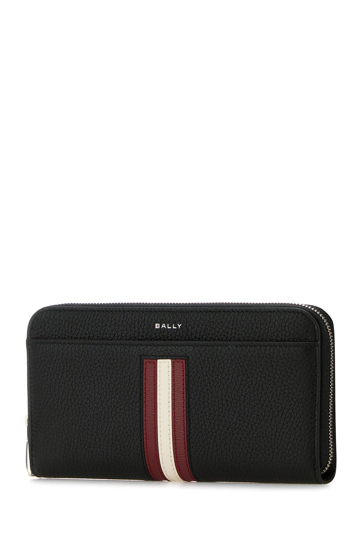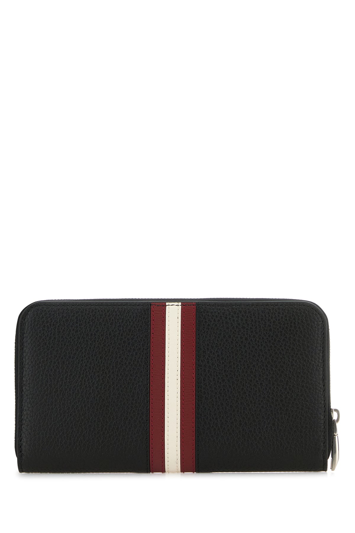 Wallet realized in pebble bovine leather characterized by laminated printed logo at the front enriched by Bally Stripes patch at the front and at the back.