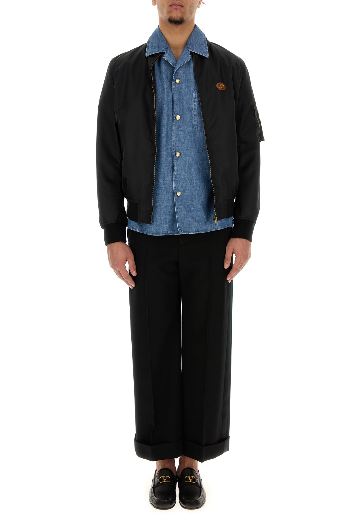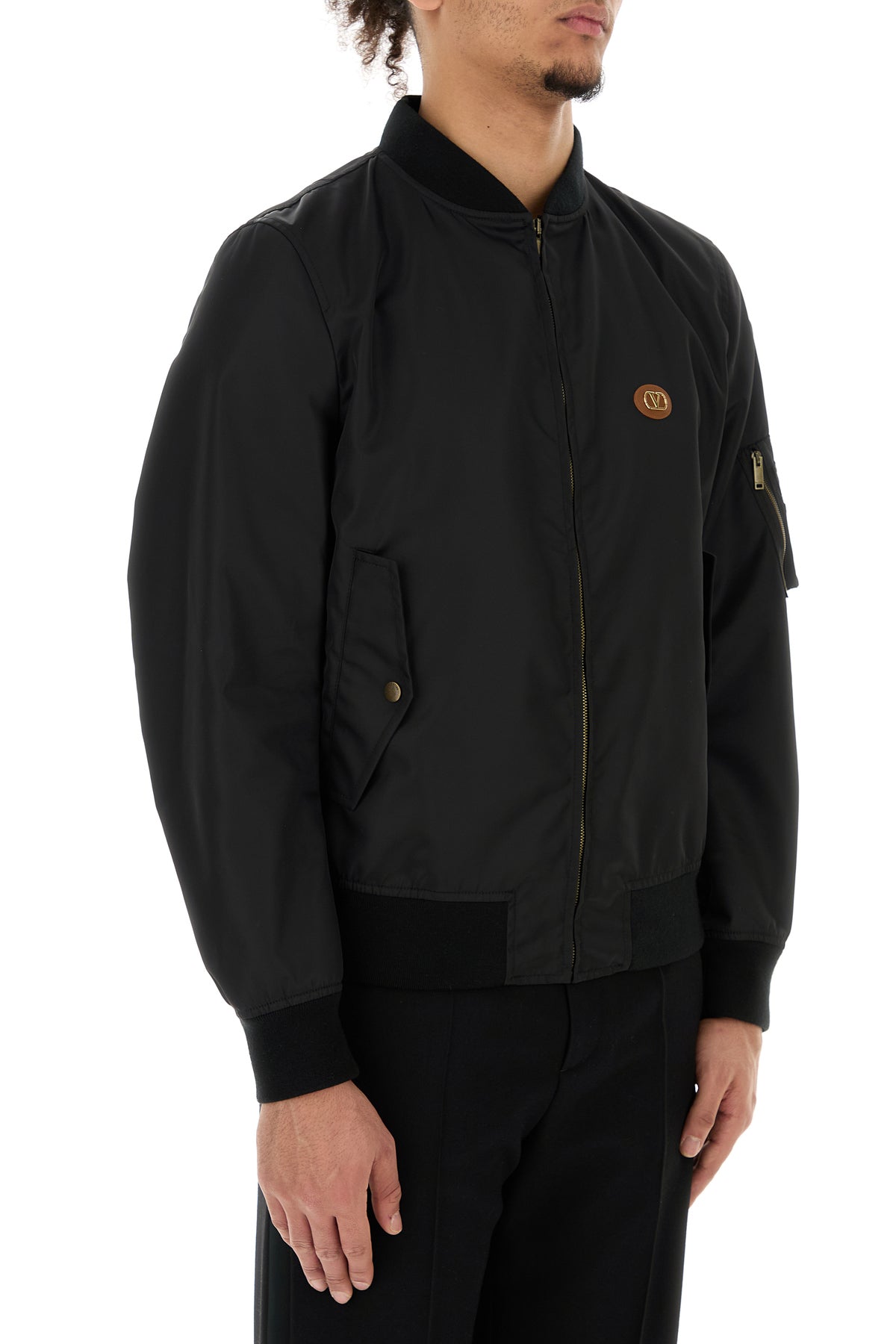 Bomber jacket realized in nylon enriched by VLogo Signature metal detail on the chest.