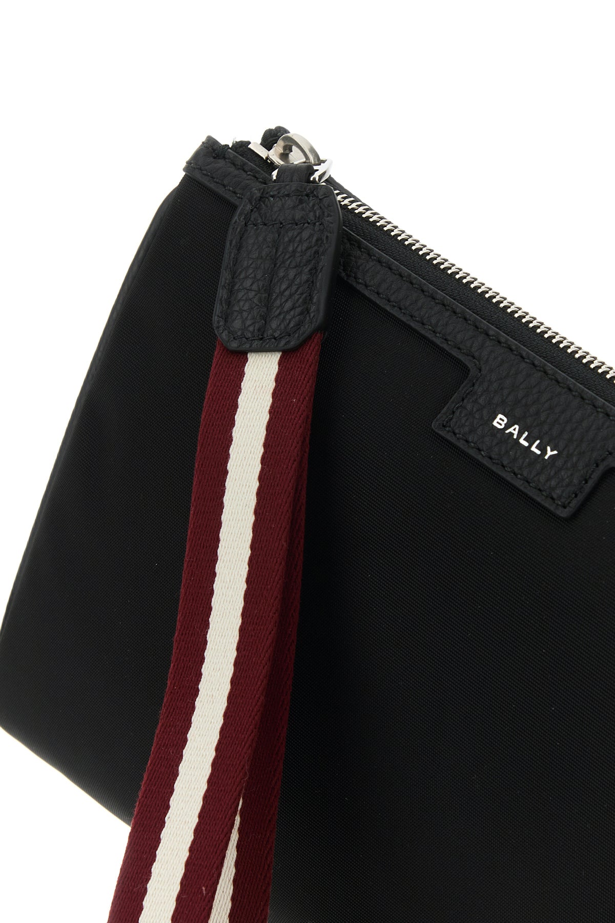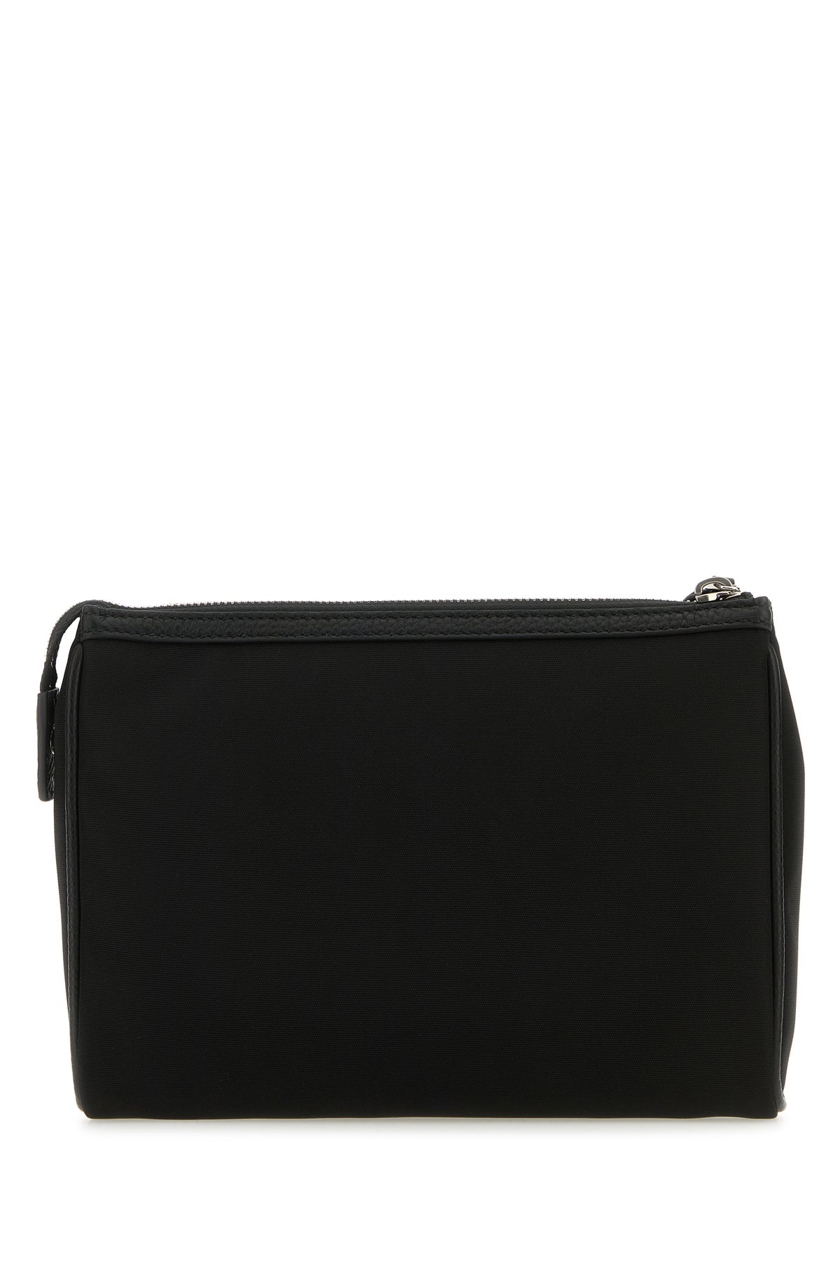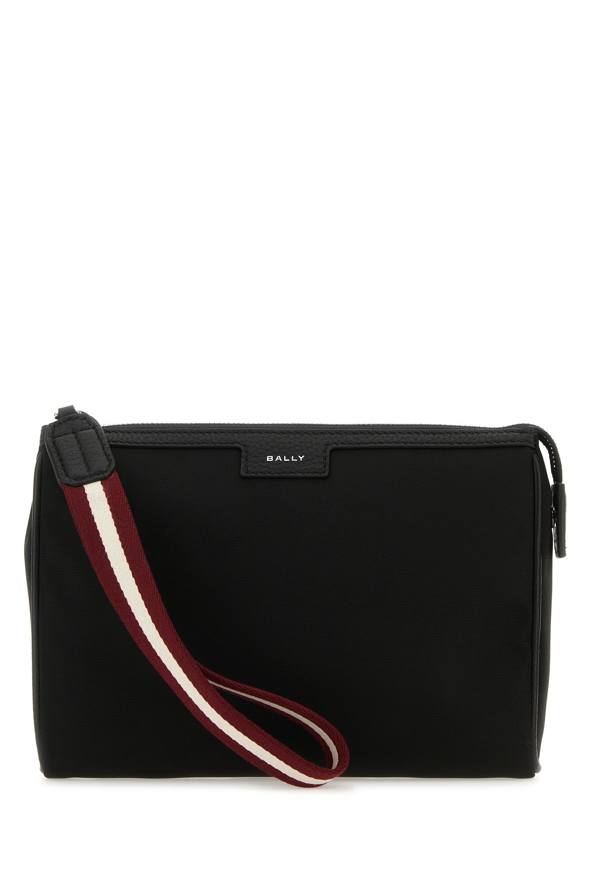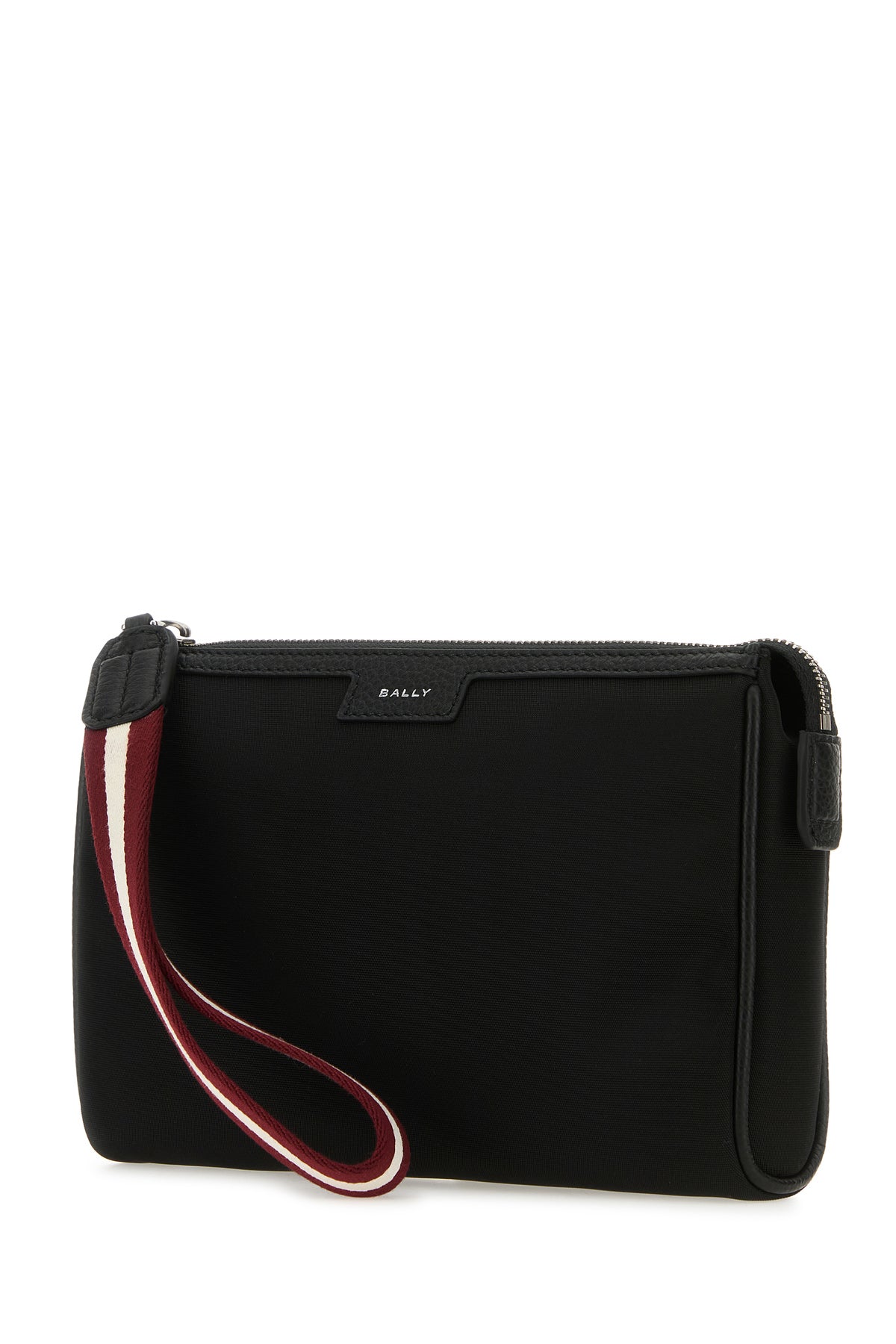 Clutch realized in nylon characterized by contrasting logoed print at the front.