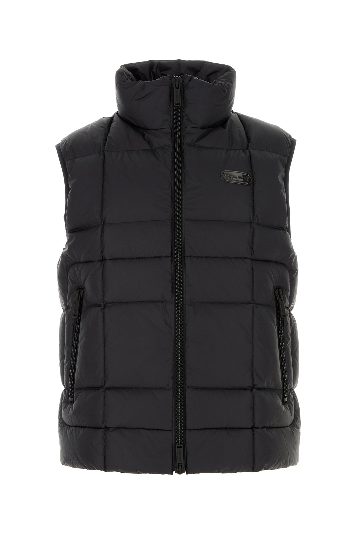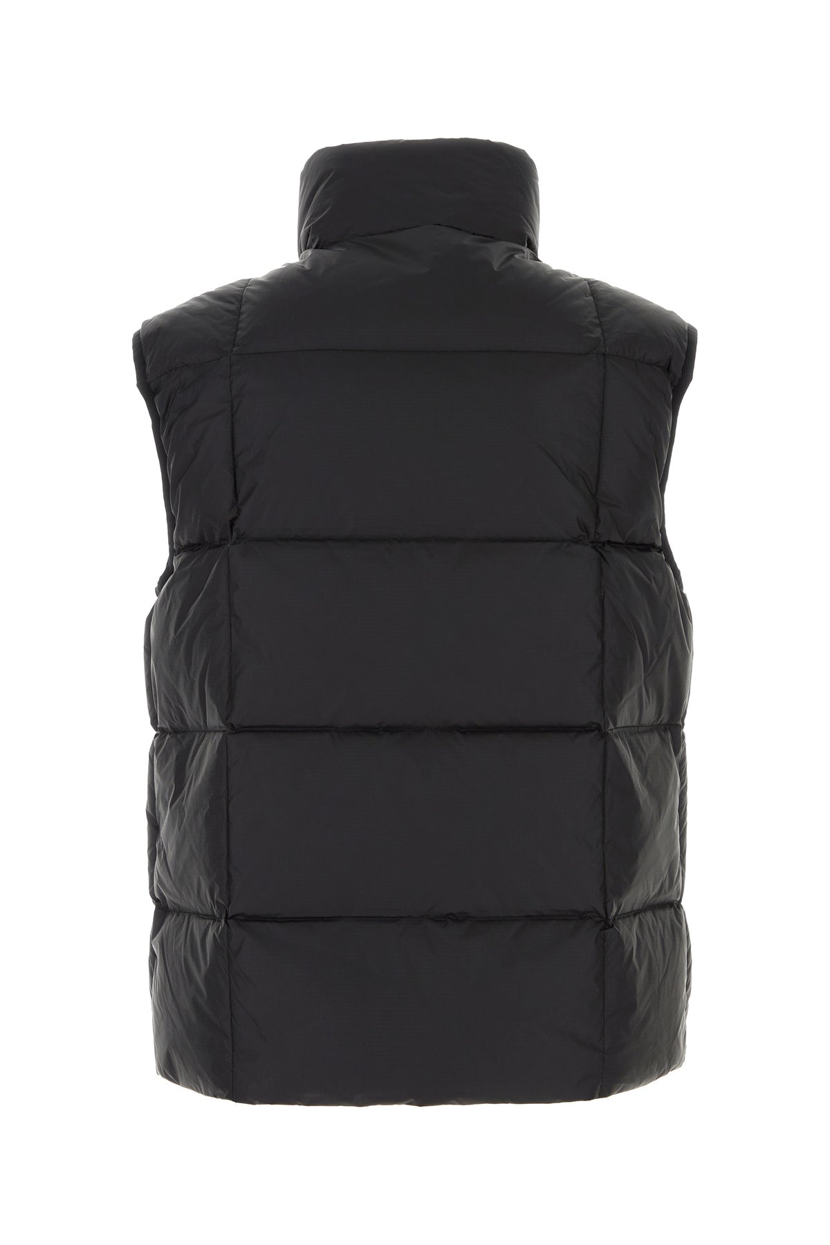 Sleeveless down jacket realized in quilted nylon enriched by tonal logoed label on the chest.