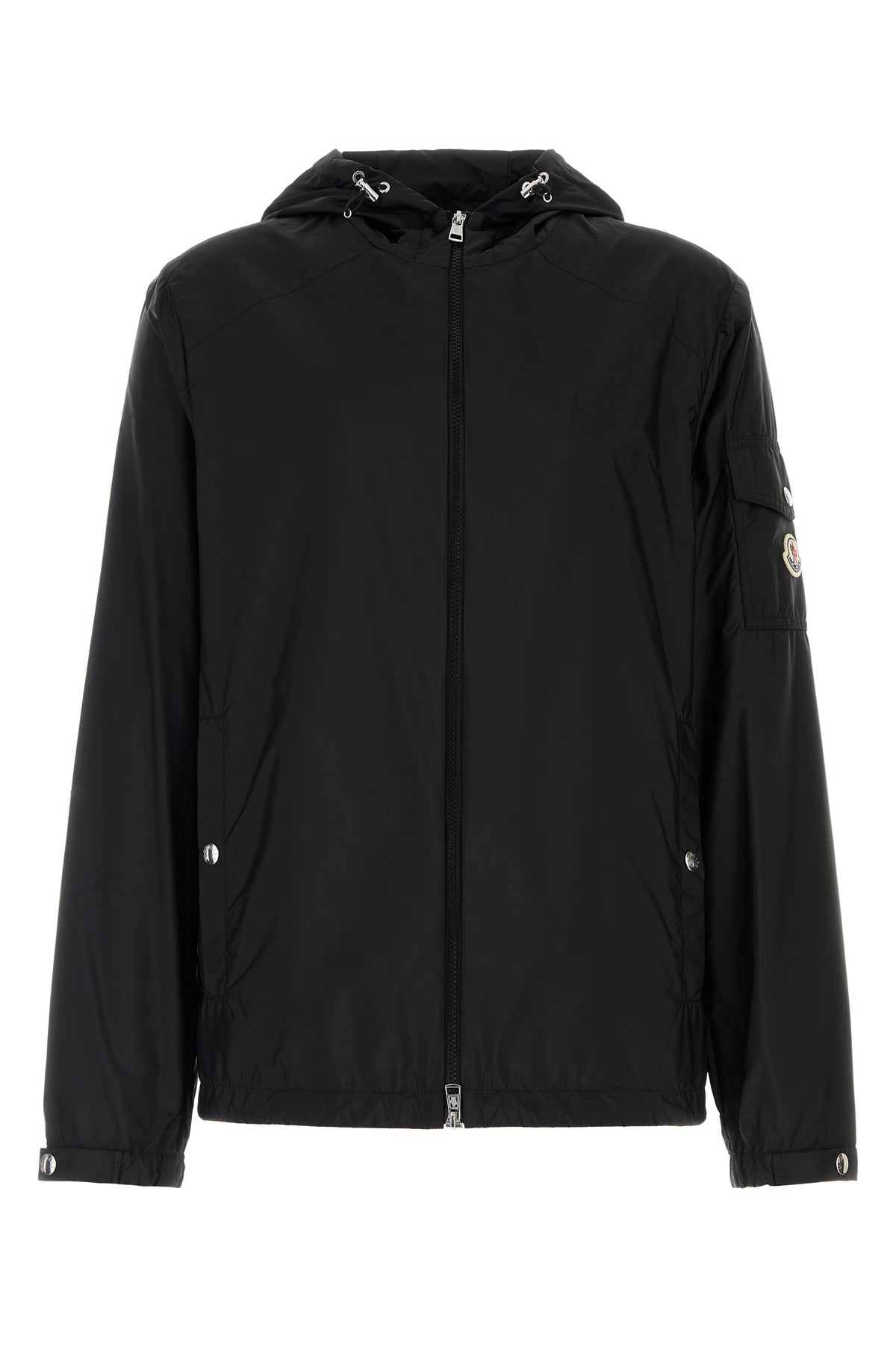 Jacket realized in nylon enriched by contrasting logoed patch on the sleeve.