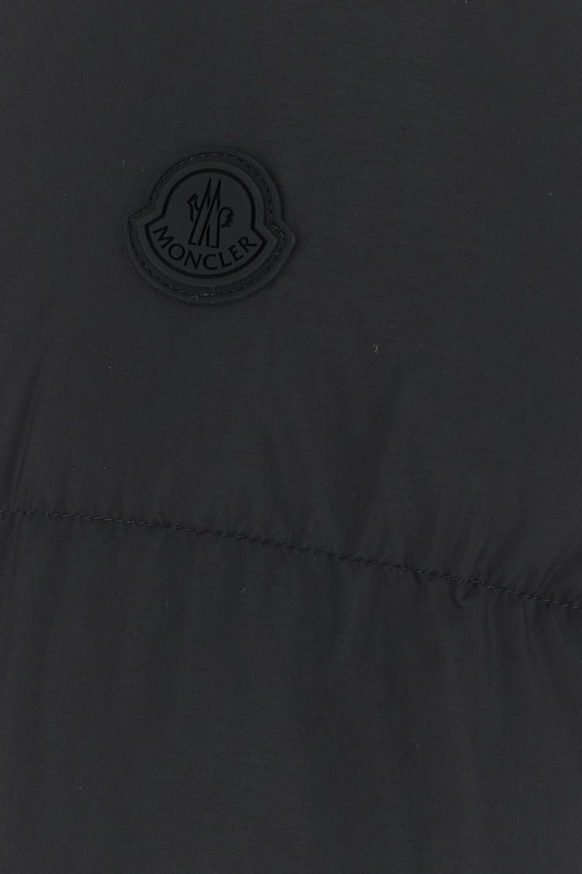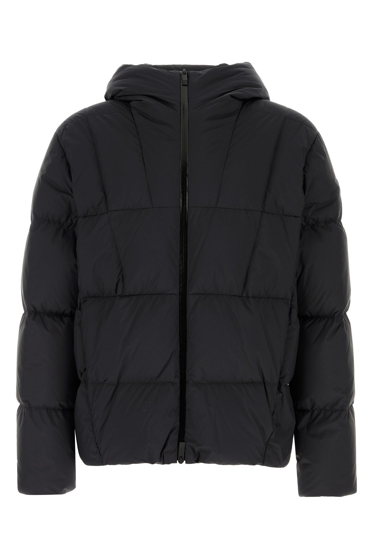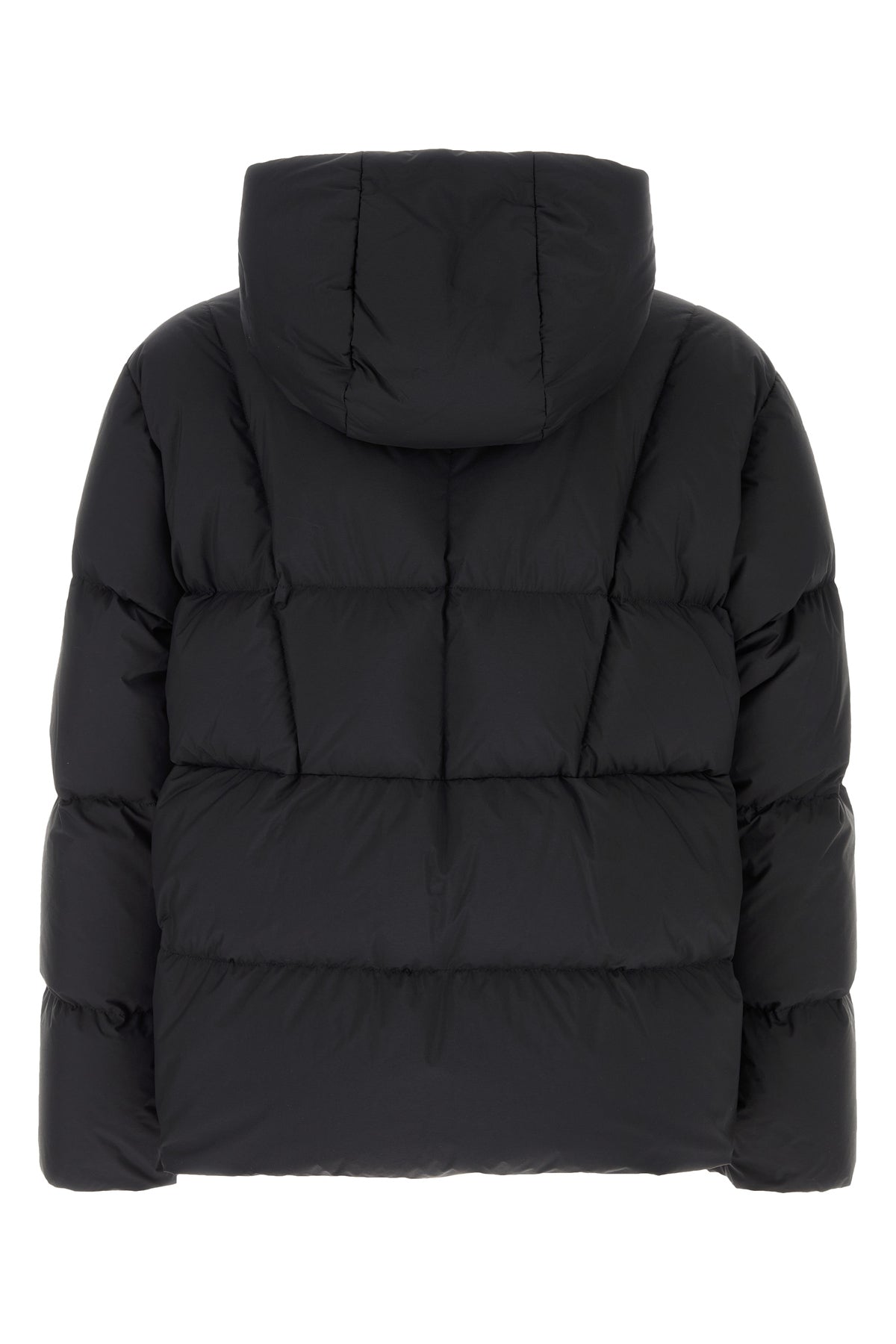 Down jacket realized in quilted nylon enriched by rubberized logoed patch on the sleeve.