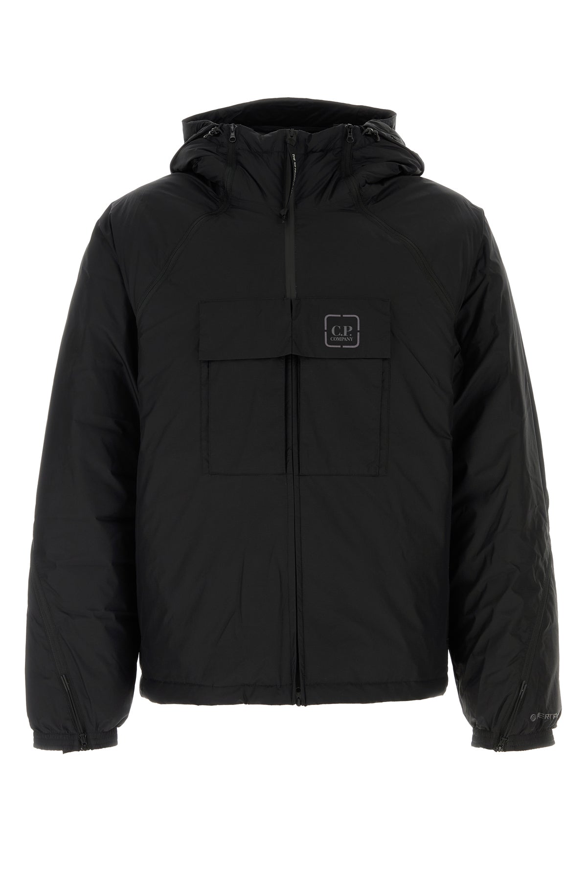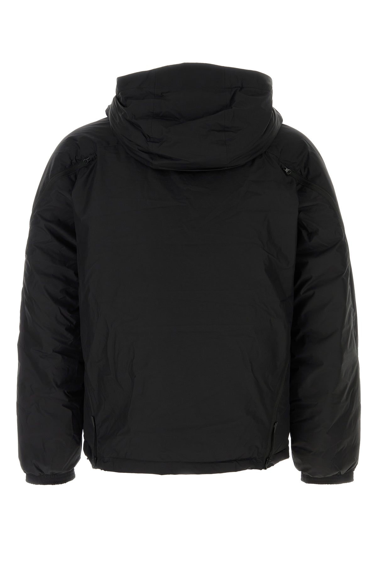Padded jacket realized in nylon characterized by contrasting printed logo on the chest.