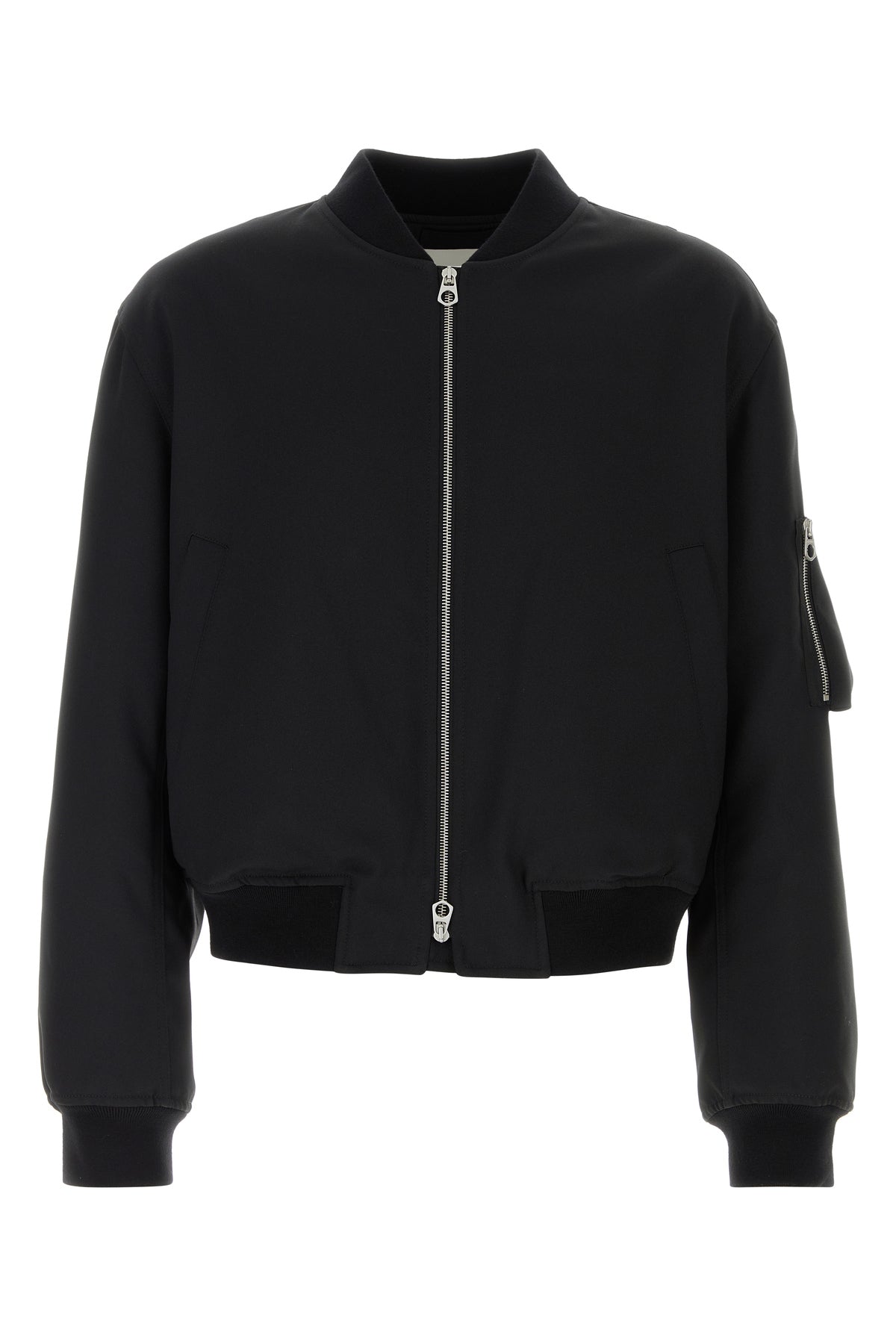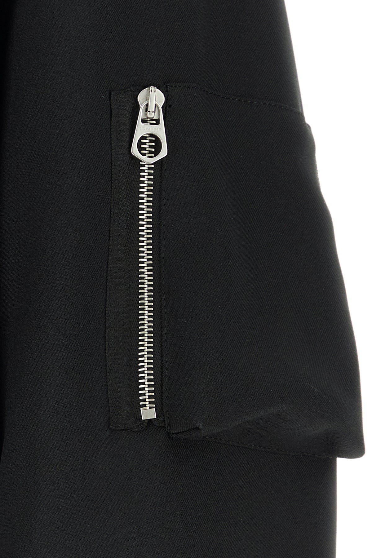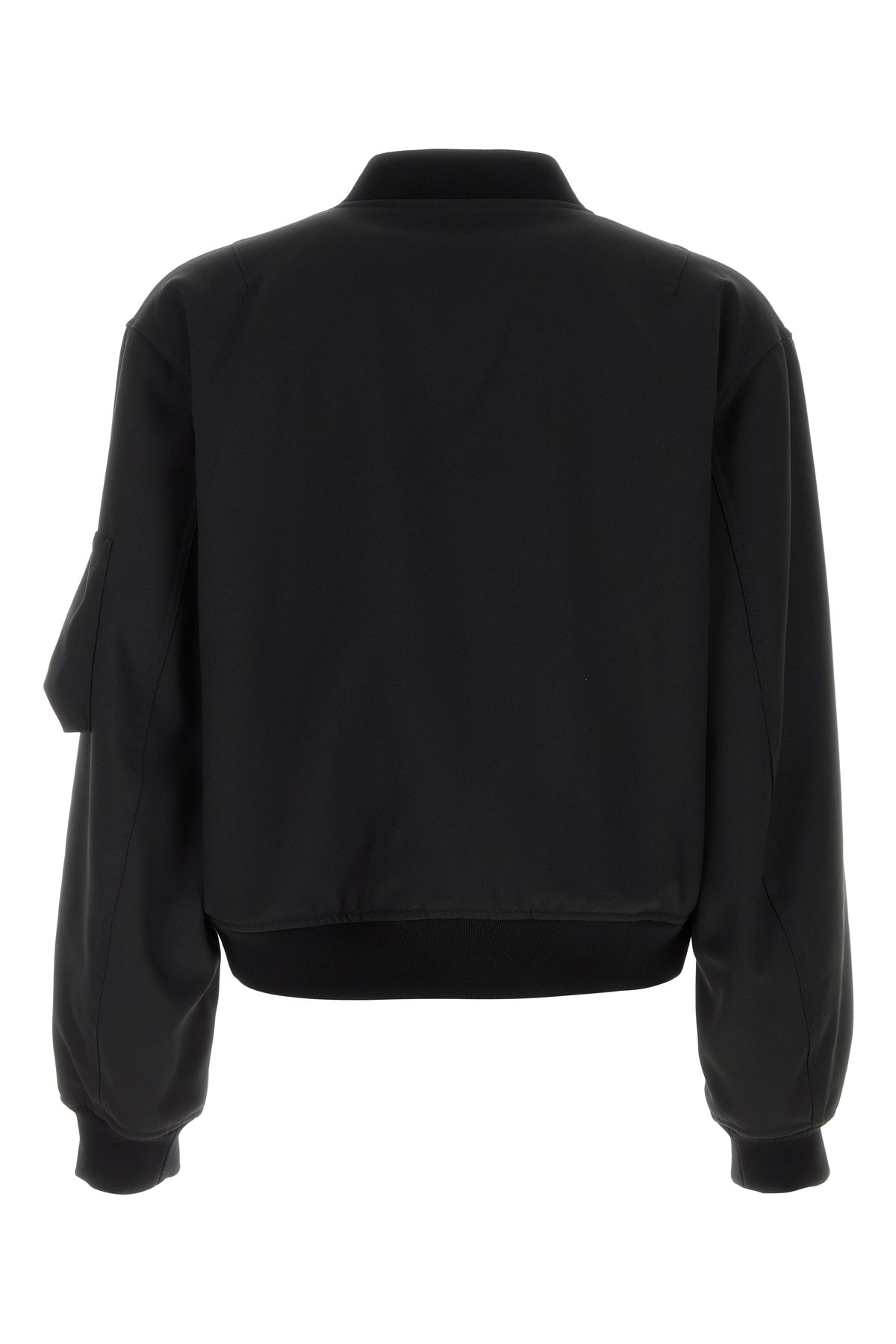 Bomber jacket realized in polyester characterized by ribbed crew-neck, cuffs and hemline.