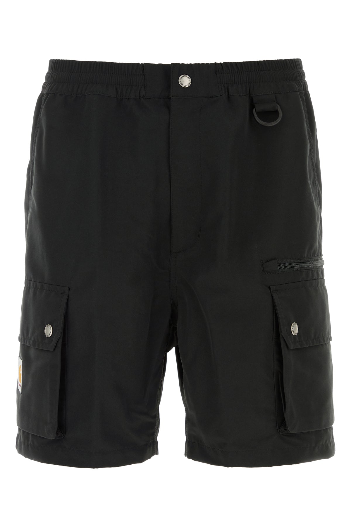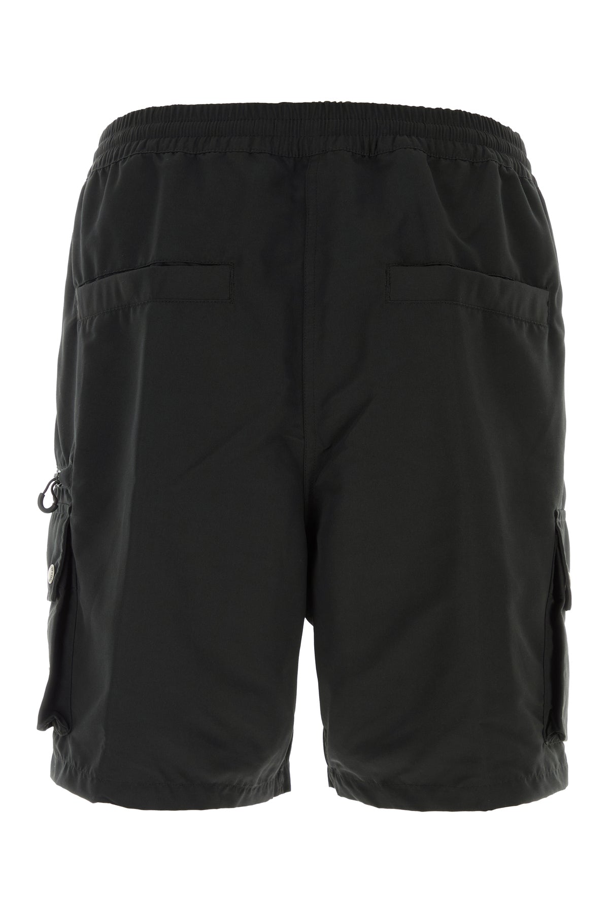 Bermuda shorts realized in polyester enriched by contrasting logoed label on the hemline.