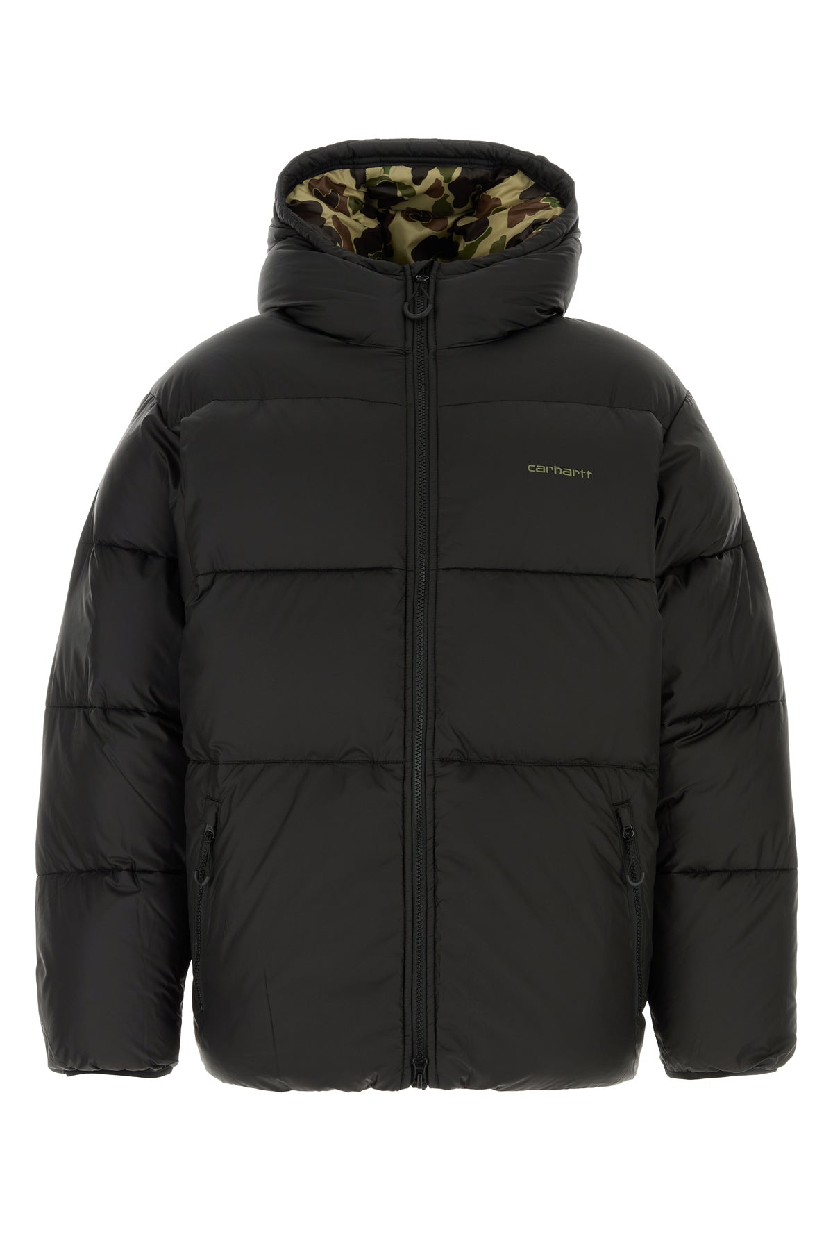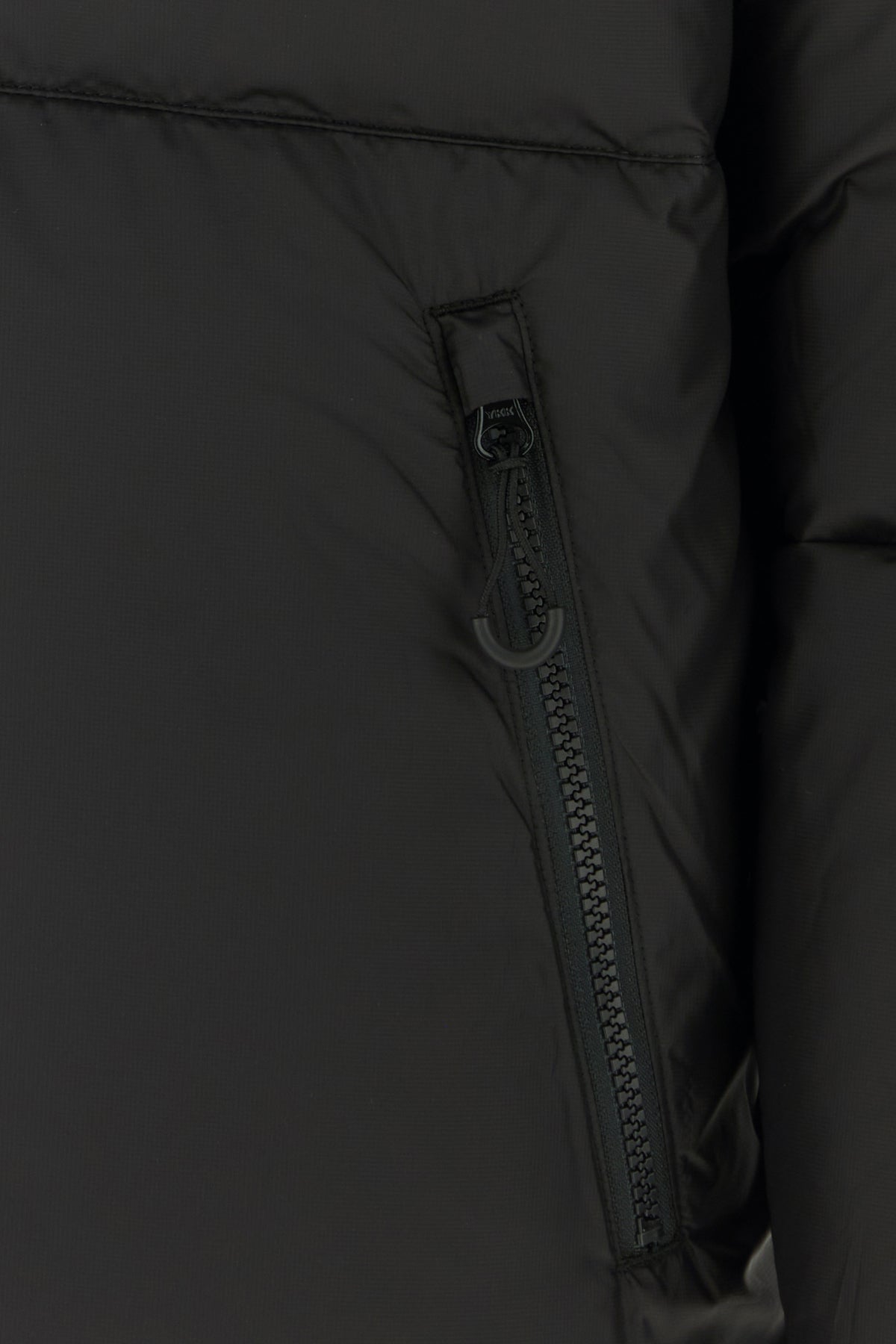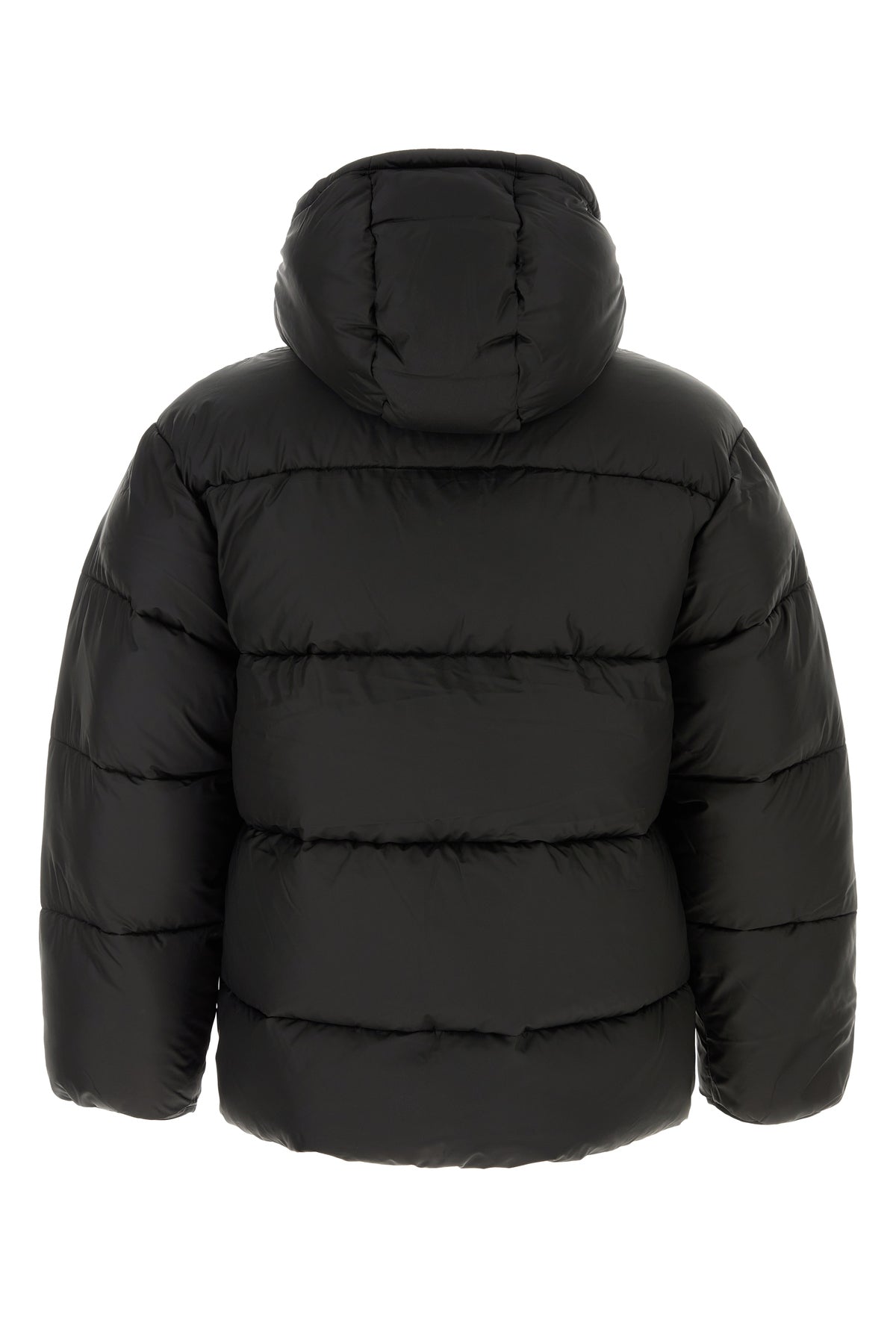 Padded jacket realized in quilted nylon characterized by contrasting logoed print on the chest.