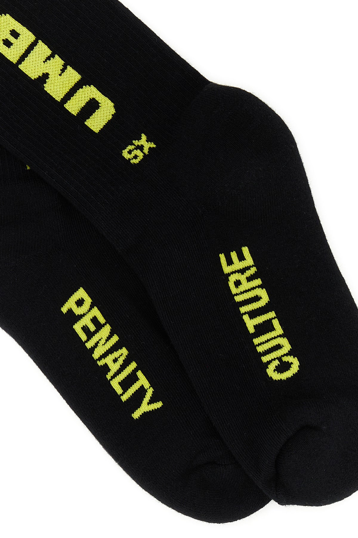 Socks realized in stretch cotton blend characterized by contrasting embroidered logo on the side.